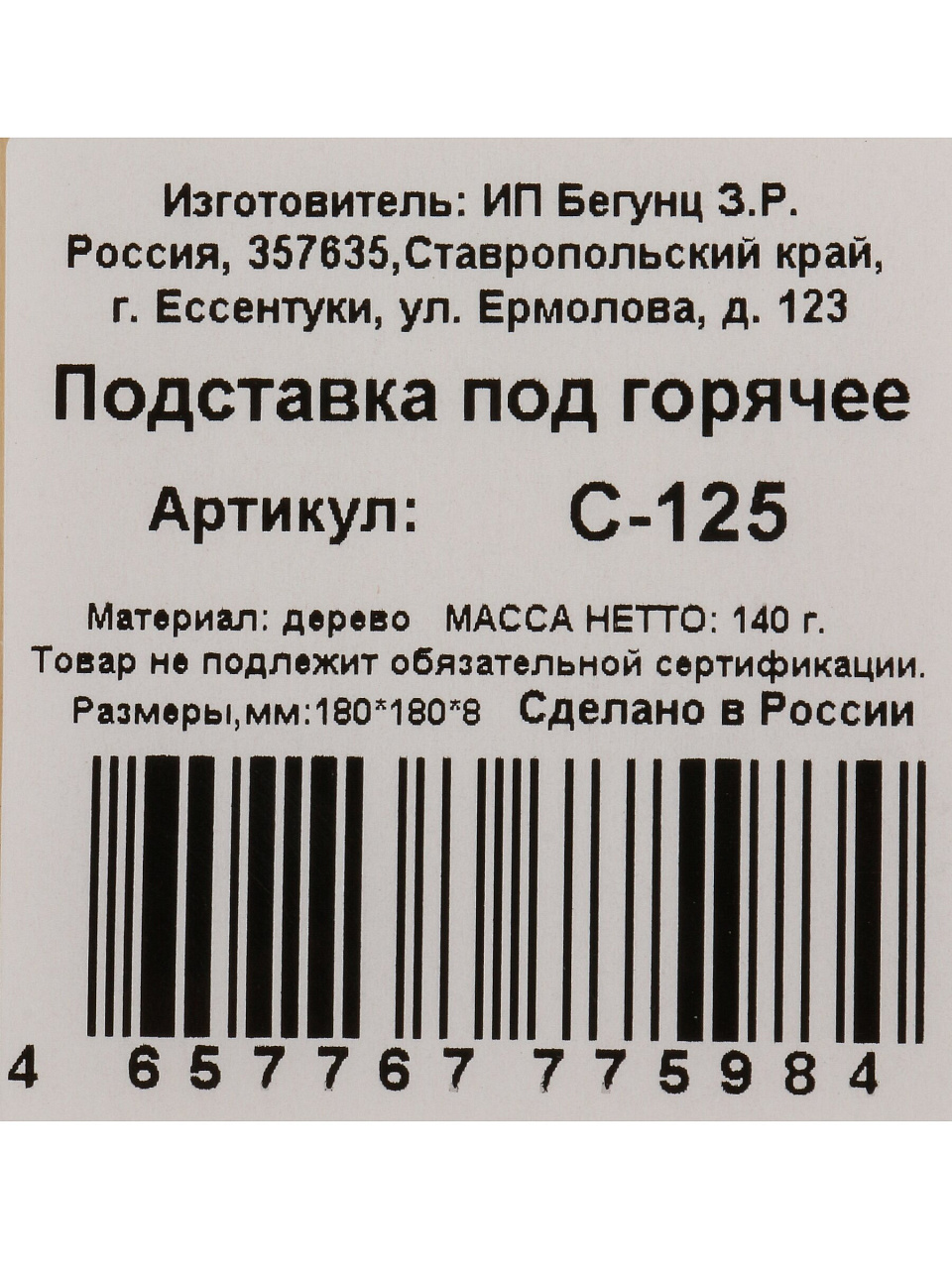 Вы можете приобрести «Подставка под горячее, дерево, квадратная, 18 см, Изобилия и процветания, С-125» и другие товары в нашем интернет-магазине в Тамбове по низким ценам и с бесплатным самовывозом.