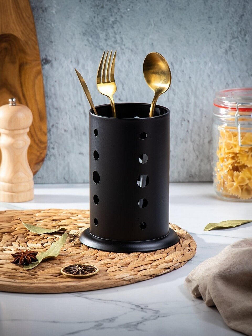 Вы можете приобрести «Подставка для столовых приборов, металл, круглая, 16.5х10х12 см, черная, Y4-6215» и другие товары в нашем интернет-магазине в Коврове по низким ценам и с бесплатным самовывозом.