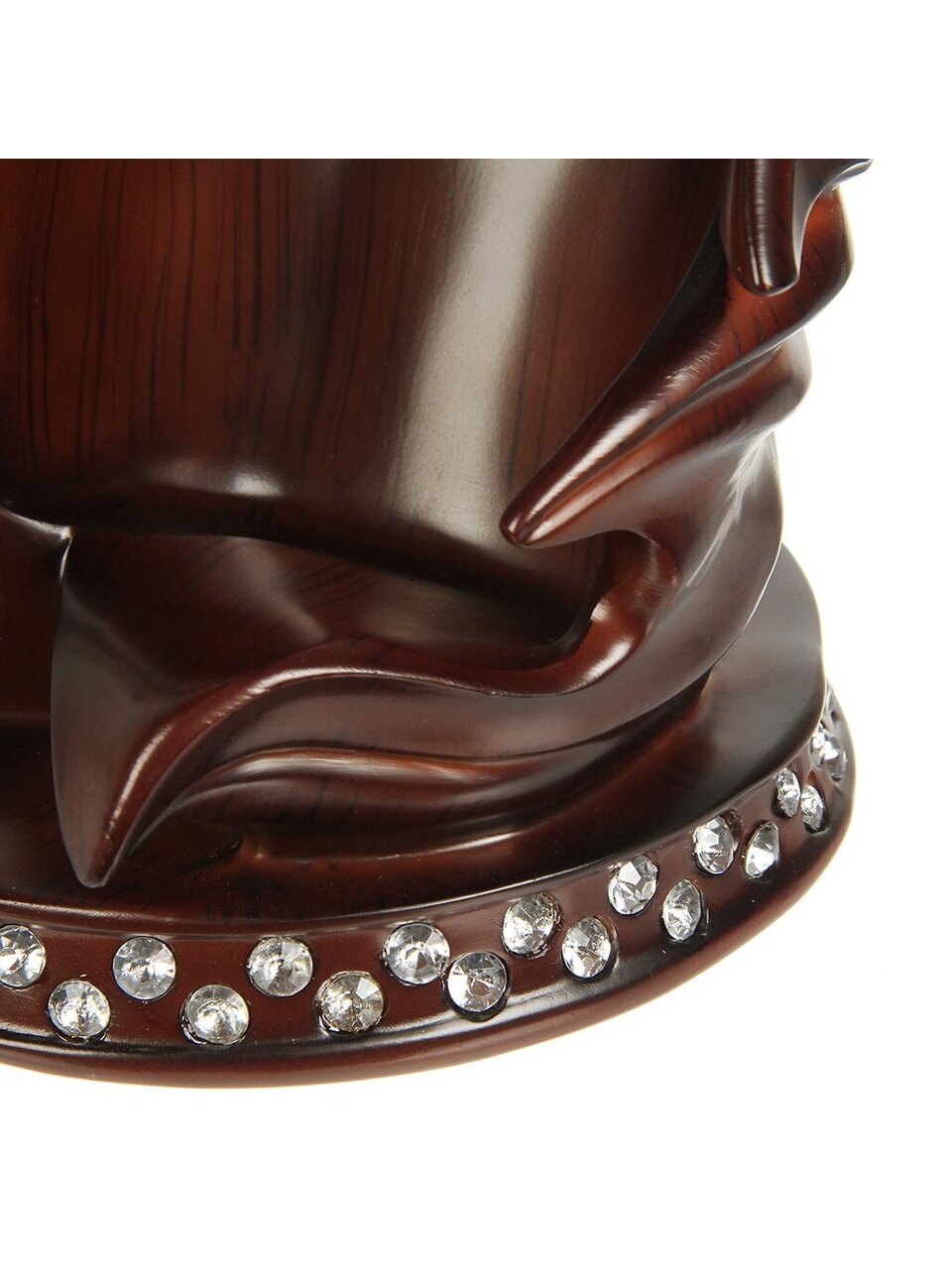 Подставка выполнена в коричневом цвете, материал — прочный, устойчивый к износу. Размеры: 15.5х17х30 см, настольный тип размещения.