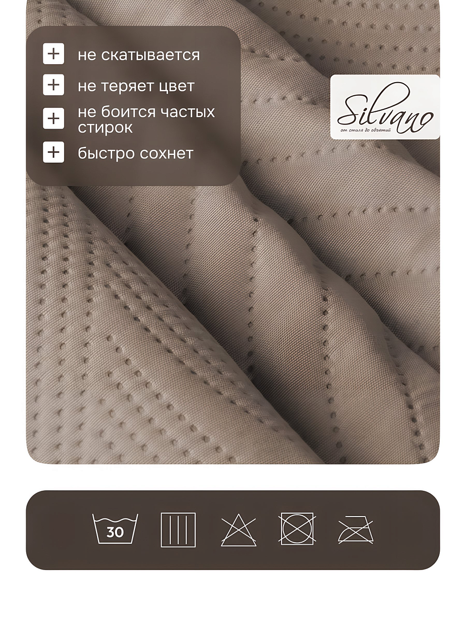 Покупка покрывала Silvano "Модерн" – это инвестиция в уют и стиль вашего дома. Оно не требует сложного ухода, легко стирается и быстро сохнет, что делает его практичным выбором для любой семьи. Покрывало защитит мебель от пыли и загрязнений, сохраняя ее в первозданном виде. Удобство и эстетика в одном продукте – это то, что делает покрывало Silvano "Модерн" незаменимым элементом вашего интерьера.