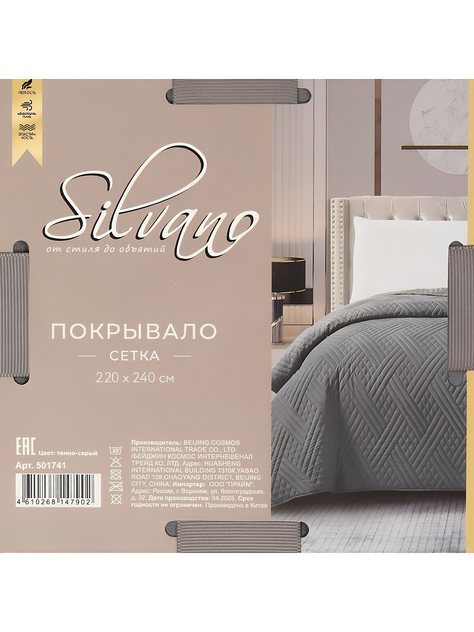 Покрывало евро 220х240 см Silvano Сетка: стильный минимализм, долговечный 100% полиэстер, идеальный выбор для спальни и гостиной — уют и практичность в каждой детали.