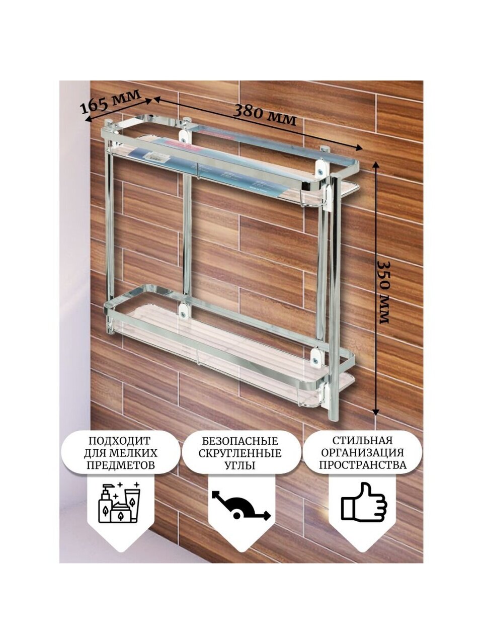Полка для ванной металл, 2 яруса, прямая, 35х16.5х38 см, хром, Y3-765 — стильное и практичное решение для организации пространства в ванной комнате. Благодаря современному дизайну и хромированному покрытию аксессуар гармонично вписывается в любой интерьер, подчеркивая чистоту и порядок. Компактные размеры позволяют разместить полку даже в небольших помещениях, а два вместительных яруса обеспечивают удобное хранение всех необходимых предметов гигиены, косметики и аксессуаров.