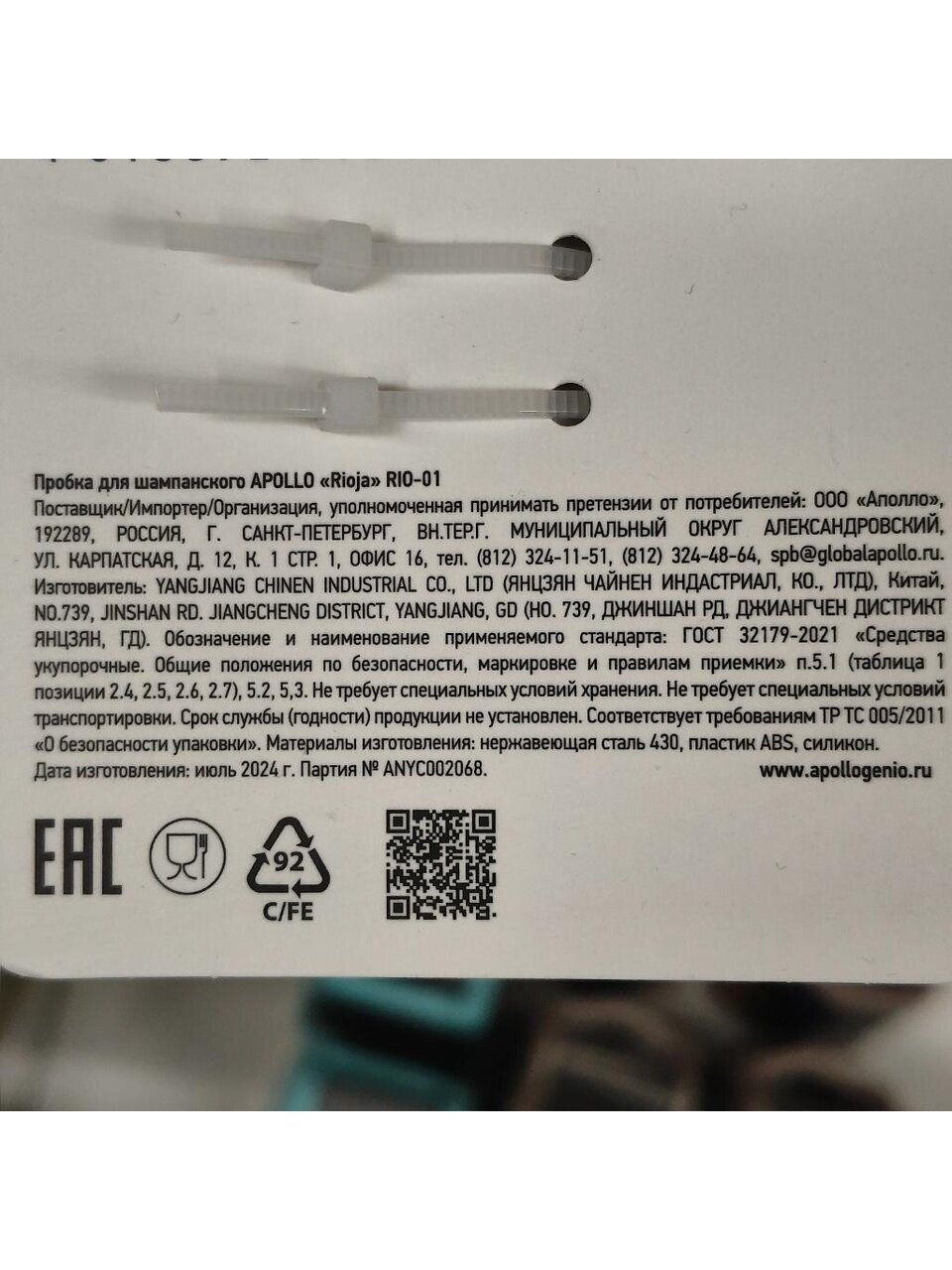 Вы можете приобрести «Пробка для бутылки шампанского, навеска, Apollo, Rioja, Rio01» и другие товары в нашем интернет-магазине в Иваново по низким ценам и с бесплатным самовывозом.
