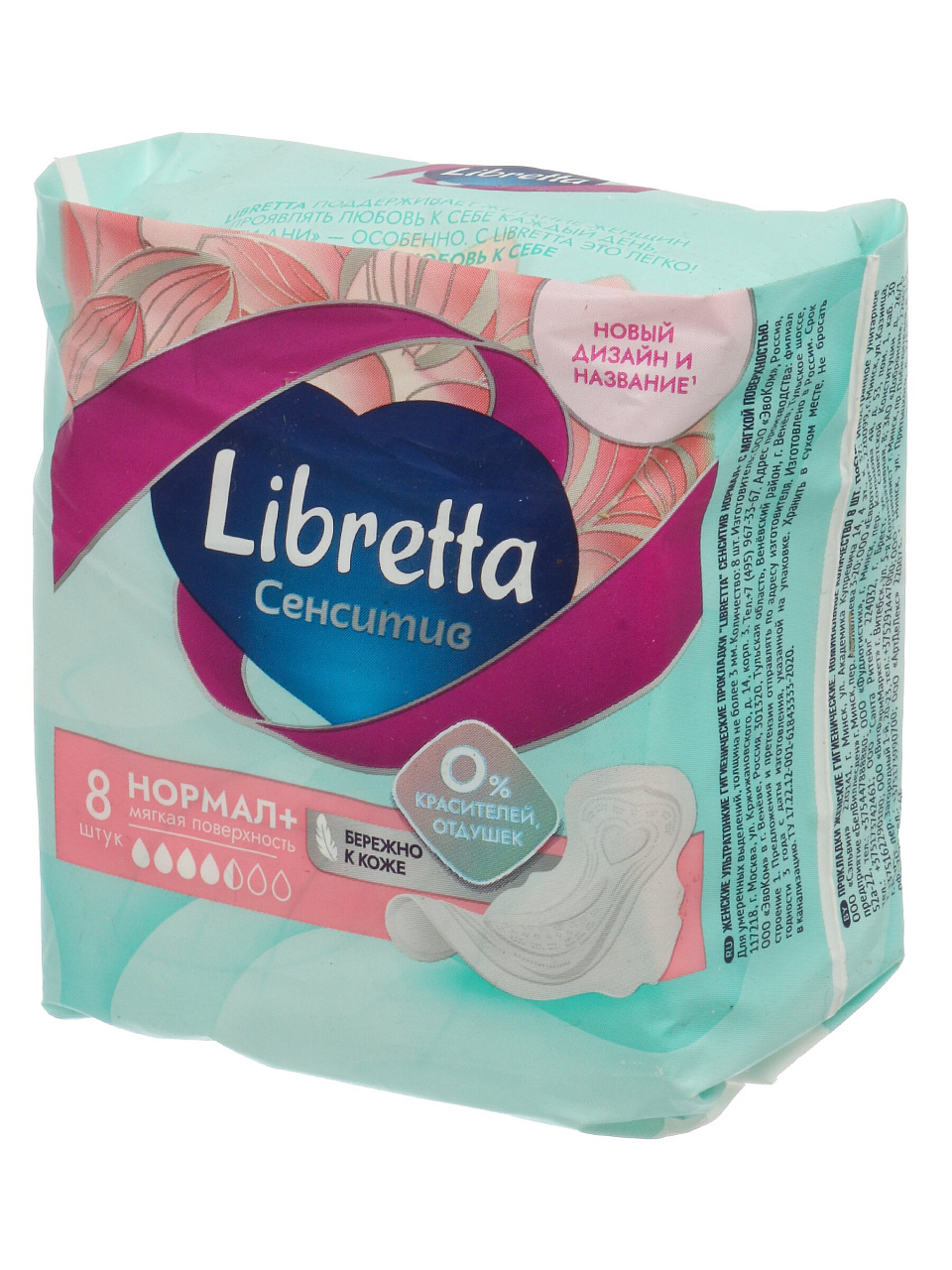 Прокладки женские Libretta Sensitive Normal 8 шт — надёжная защита для чувствительной кожи, комфорт на весь день, выгодная цена и компактная упаковка.