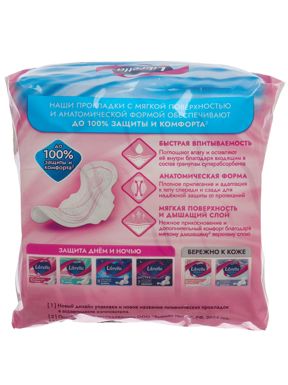 Libretta Ultra Normal Deo — стандартная длина, оптимальны для средних выделений. Тонкая структура делает их незаметными под одеждой, при этом они надежно защищают от протеканий.