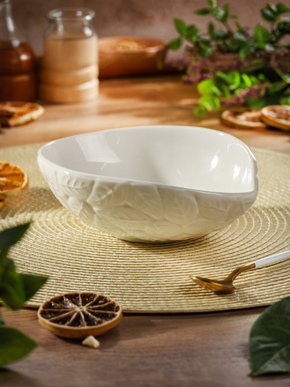 Овальный керамический салатник 16х5 см Daniks «Листья» — стильный акцент для сервировки, подходит для СВЧ и посудомоечной машины. Идеален для дома, дачи, подарка.
