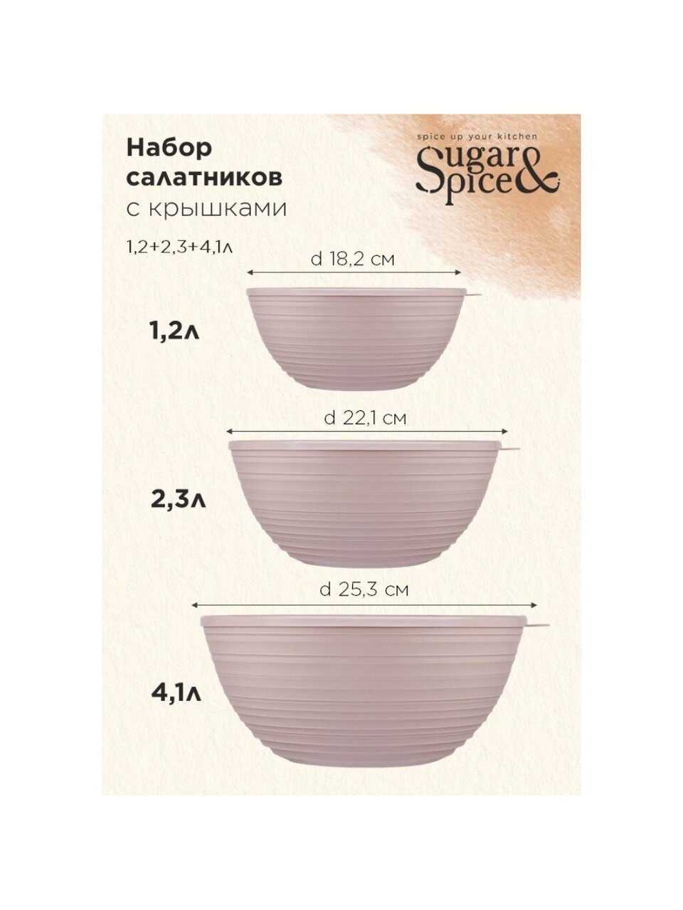 Салатники пластиковые с крышкой, набор 3 шт. (4.1/2.3/1.2 л), Cardamom Sugar&Spice — универсальное решение для хранения и сервировки дома и на даче.
