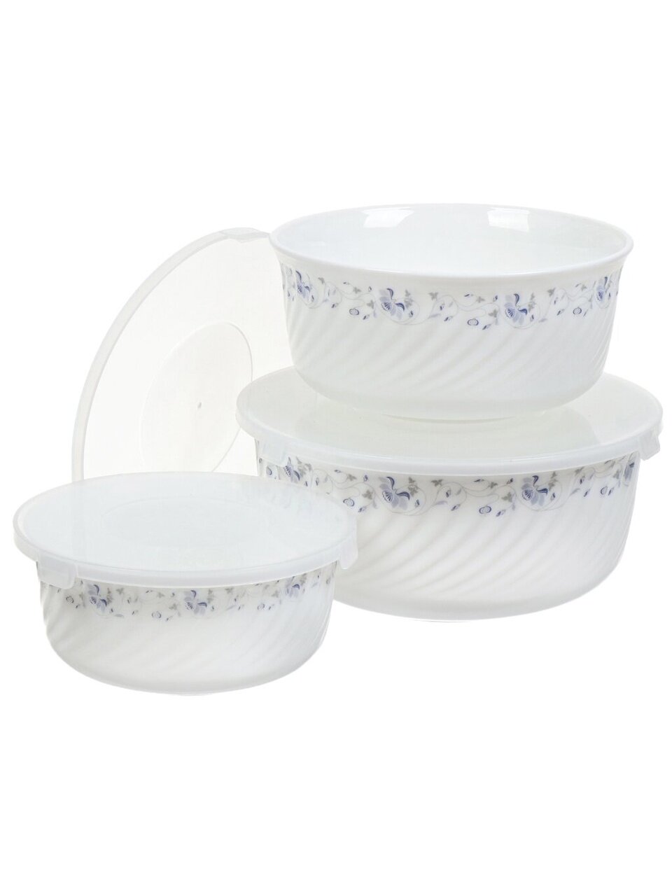 Салатники из стеклокерамики Daniks «Эдем» (набор 3 шт: 1.4, 0.8, 0.5 л) с крышками — стильный выбор для сервировки, хранения и подачи блюд дома и на даче.