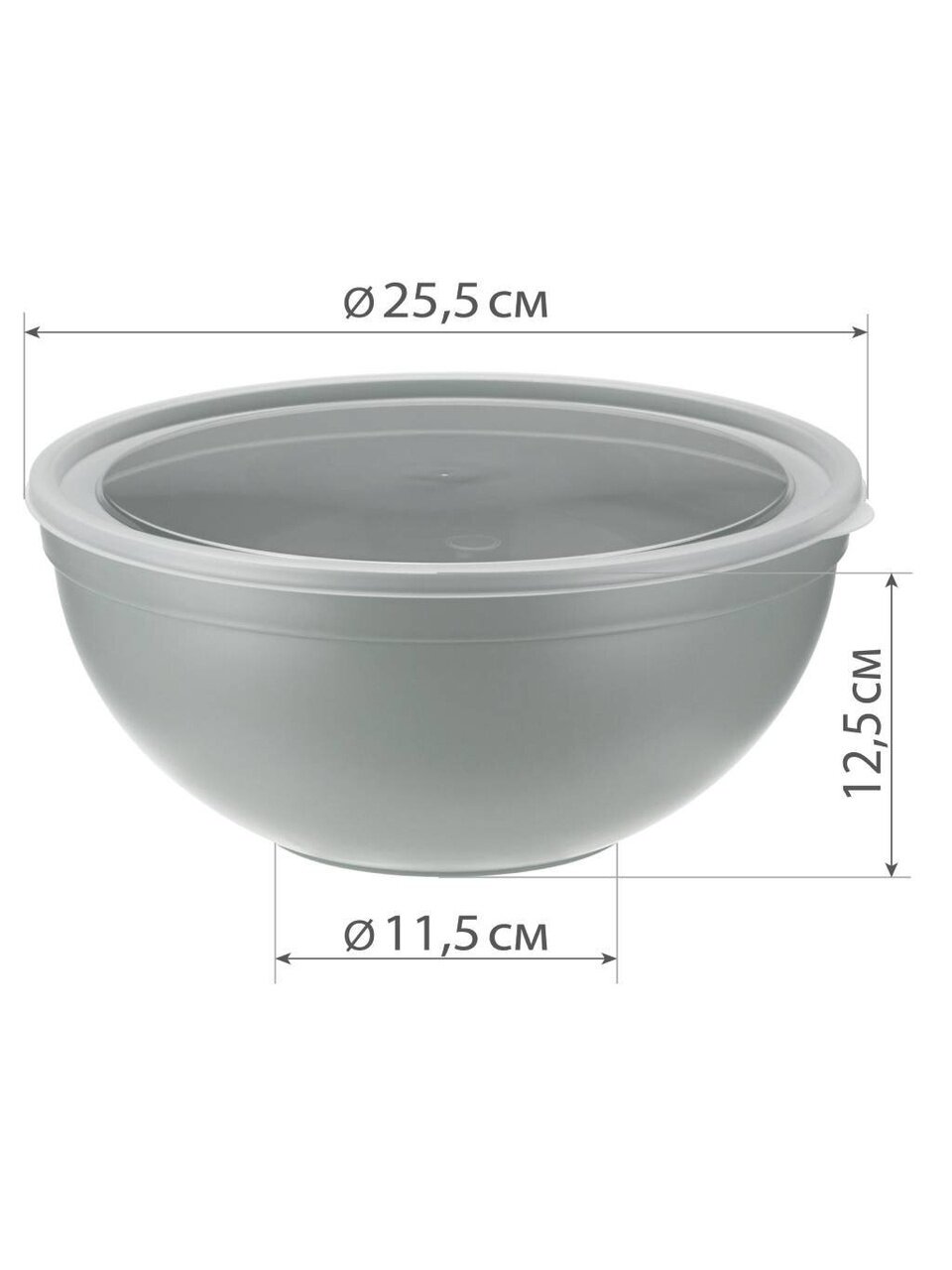 - Объём 4 литра, диаметр 25,5 см и высота 12,5 см — идеальный размер для замешивания теста, салатов, хранения овощей, компактен для кухни