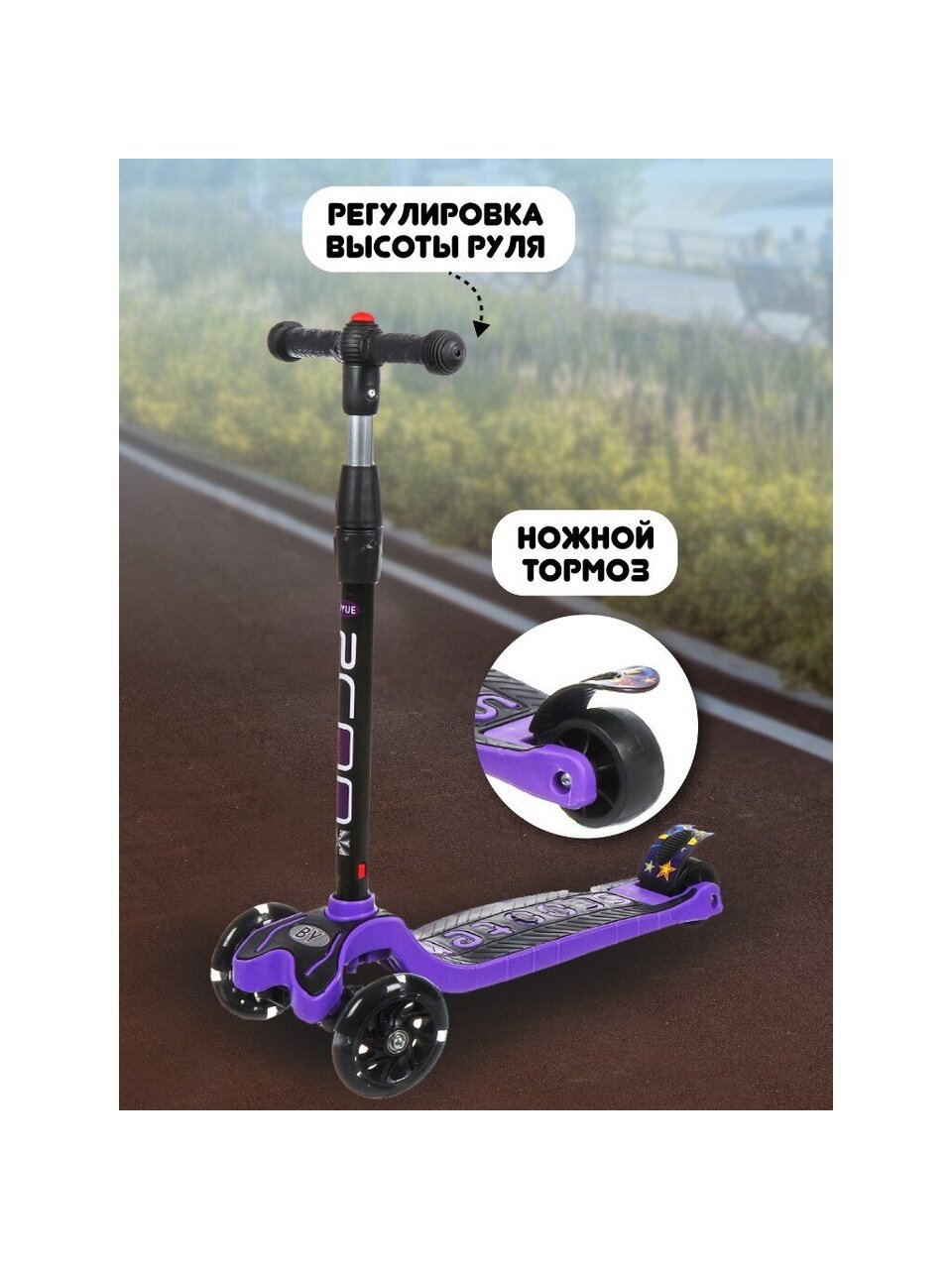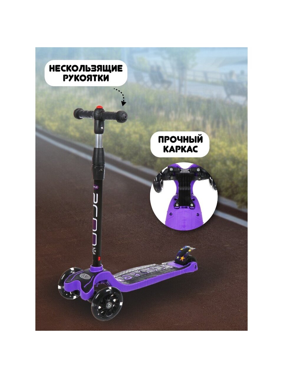 Самокат - отличный выбор для активного отдыха на природе. Спортивный транспорт сделает прогулку еще веселее и станет дополнительным поводом провести время на улице. Благодаря трехколесной конструкции самокат поможет держать равновесие даже неопытным пользователям и станет надежным спутником на длинных дистанциях.