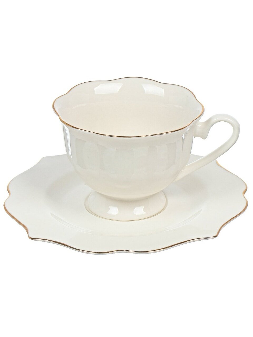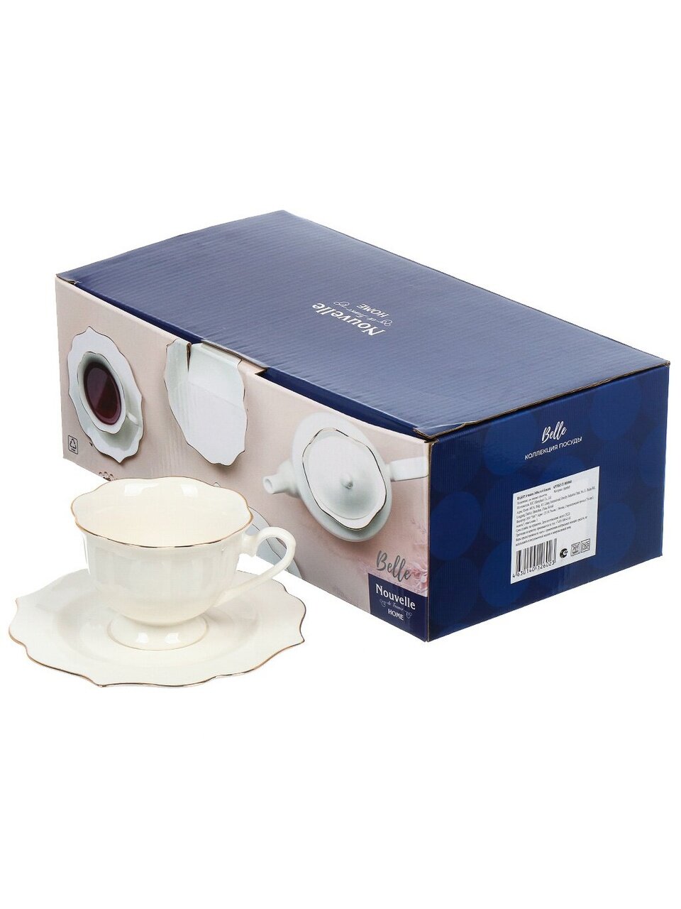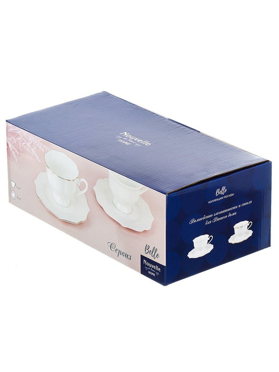 Премиальный чайный набор из 12 предметов Belle: для 6 персон, фарфор с золотой каймой, идеальный подарок в стильной упаковке.