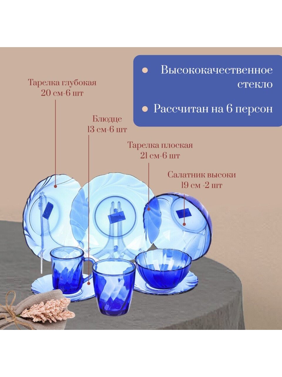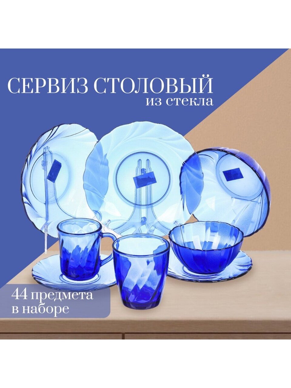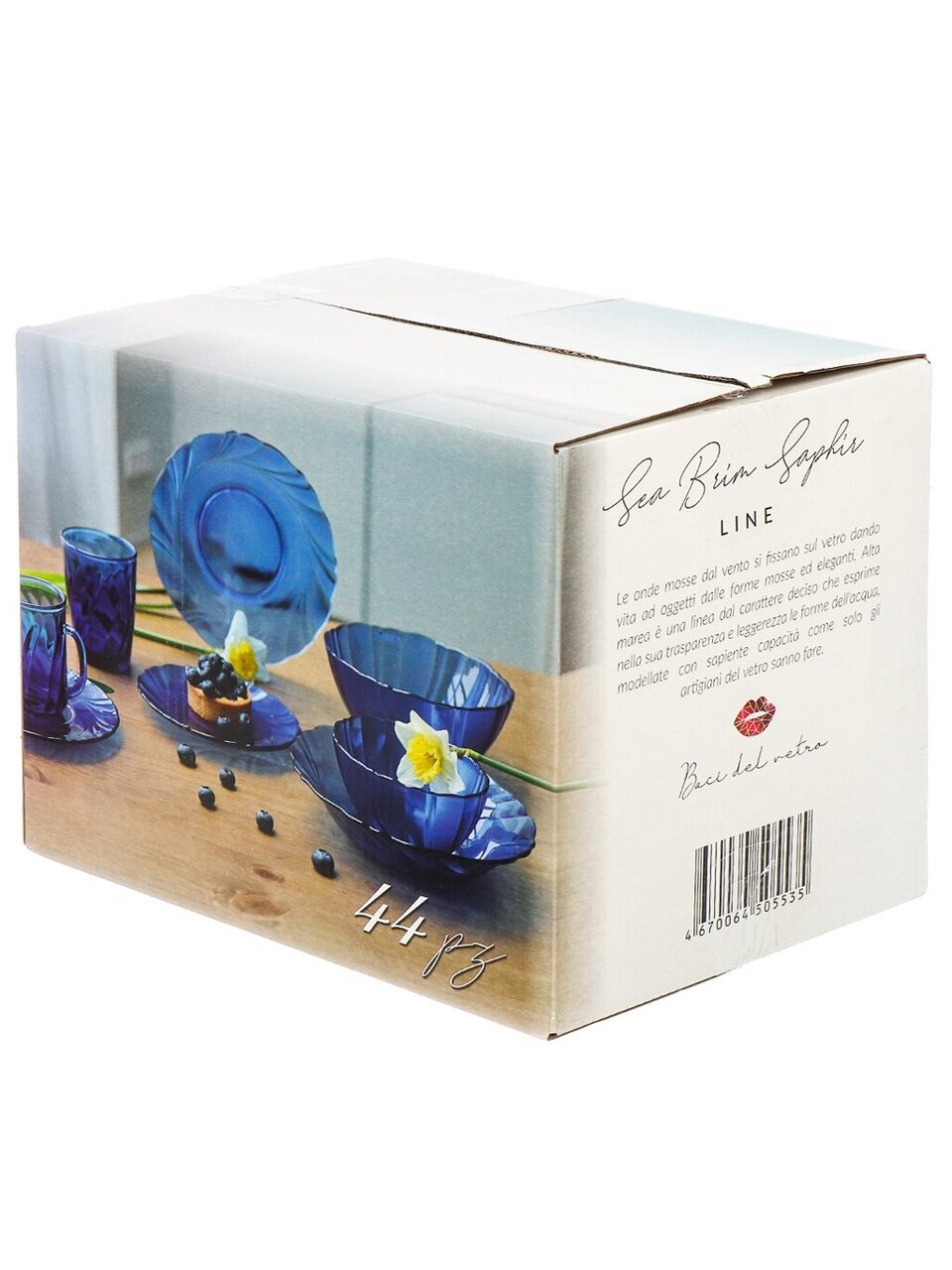 Столовый сервиз из стекла Sea brim Saphir на 6 персон, 44 предмета — элегантное решение для дома и подарка, подходит для посудомоечной машины и СВЧ.