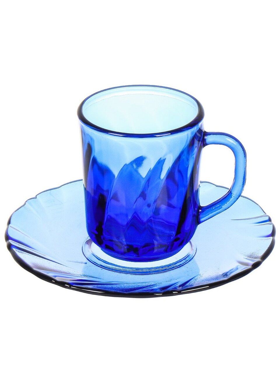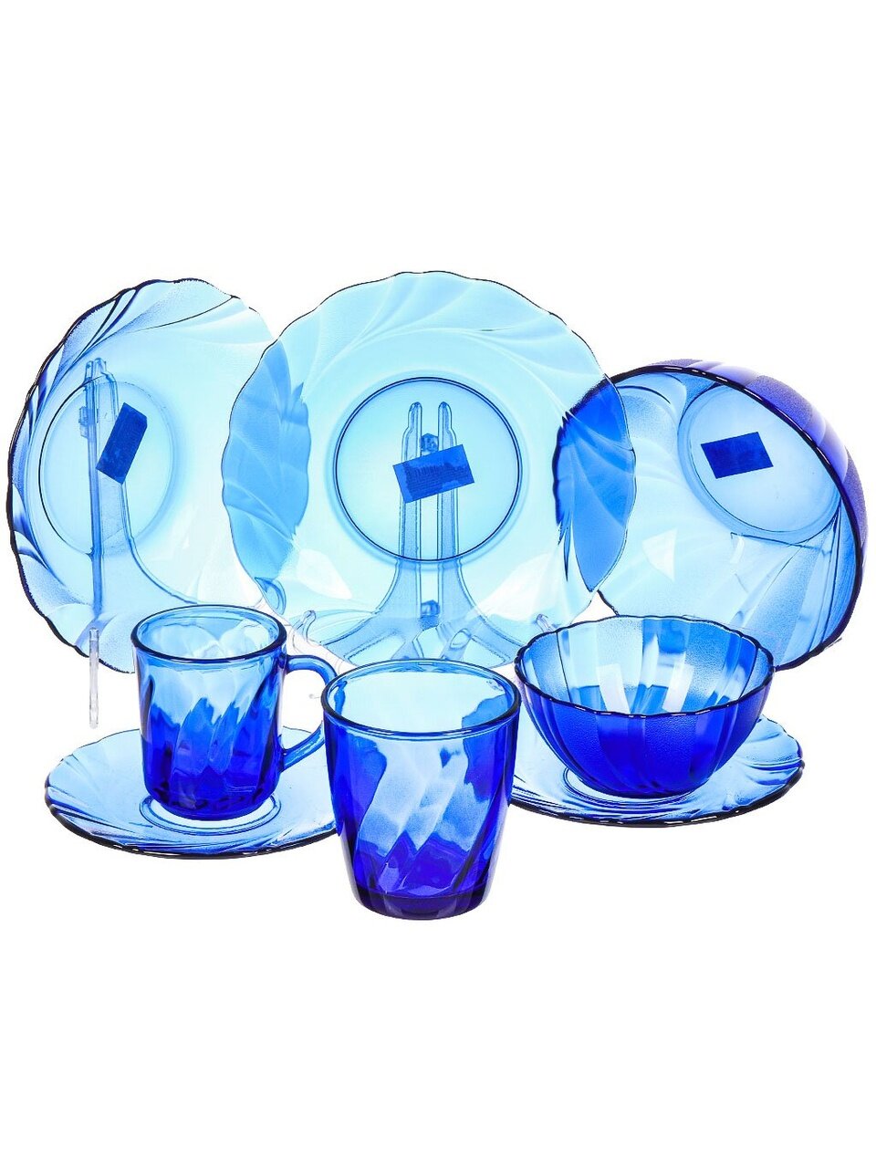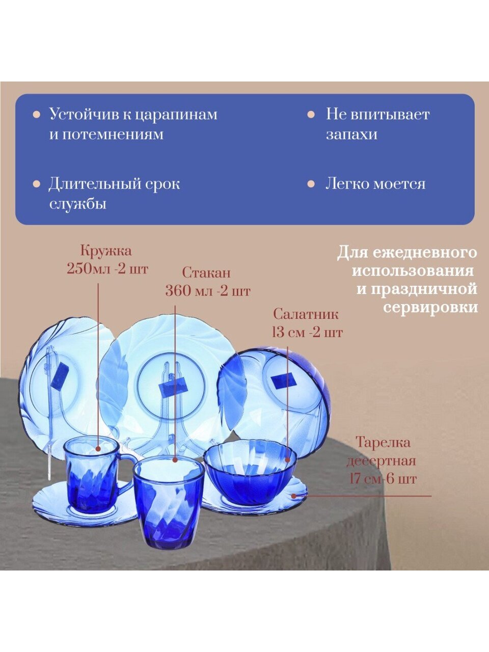 Столовый сервиз из стекла Sea brim Saphir на 6 персон, 44 предмета — элегантное решение для дома и подарка, подходит для посудомоечной машины и СВЧ.