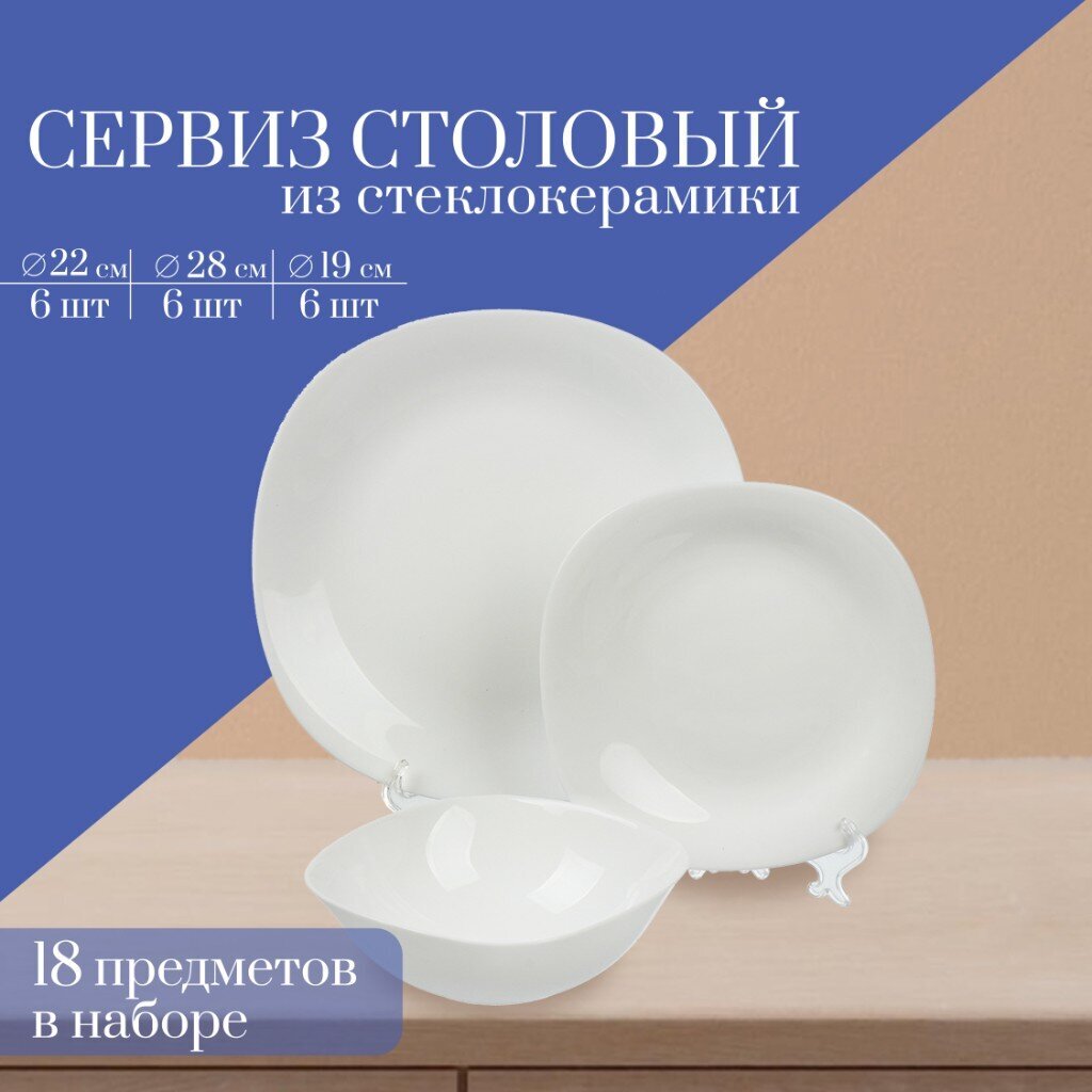 Вы можете приобрести «Сервиз столовый стеклокерамика, 18 предметов, на 6 персон, Луна белая, гладкий квадрат 1/2, 100б-18лк» и другие товары в нашем интернет-магазине в Ельце по низким ценам и с бесплатным самовывозом.