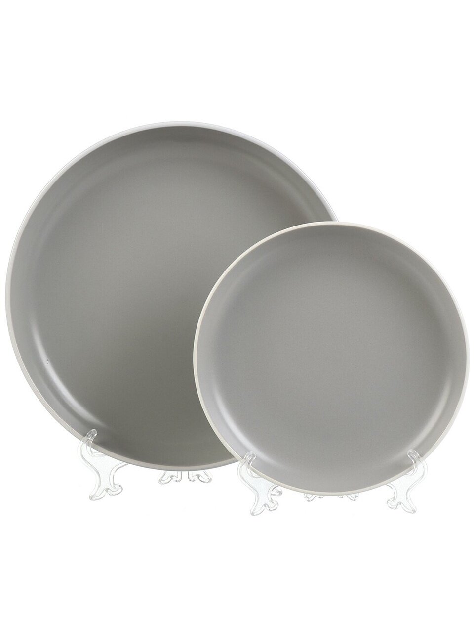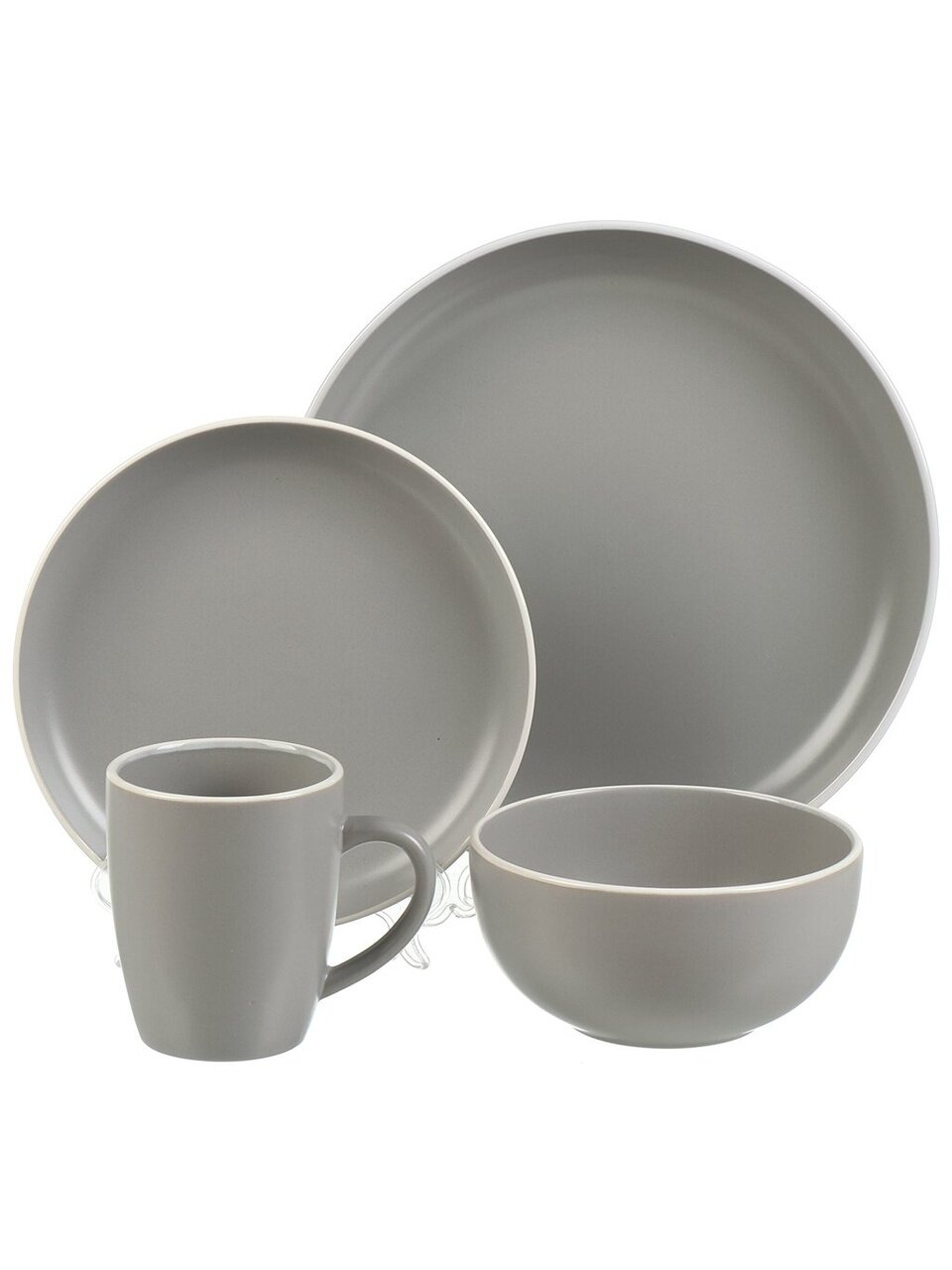 Столовый сервиз из керамики на 4 персоны (16 предметов, B010859, светло-серый): стиль для дома и дачи, подходит для СВЧ и посудомоечной машины.