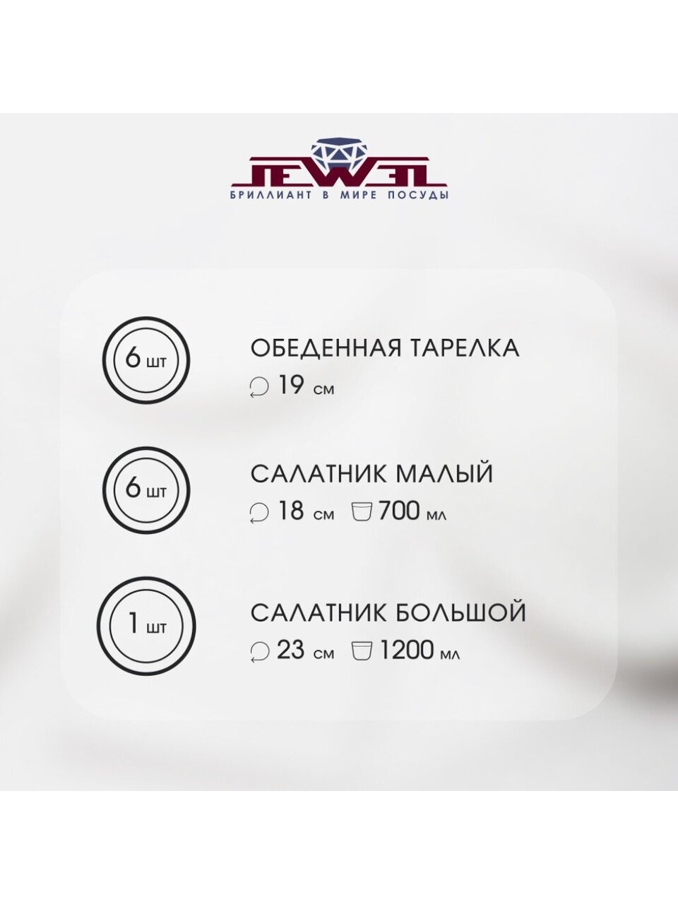 Столовый сервиз из стеклокерамики Jewel Роуз на 6 персон — 13 предметов для стильной сервировки и ежедневного комфорта. Безопасно для СВЧ и посудомоечной машины.