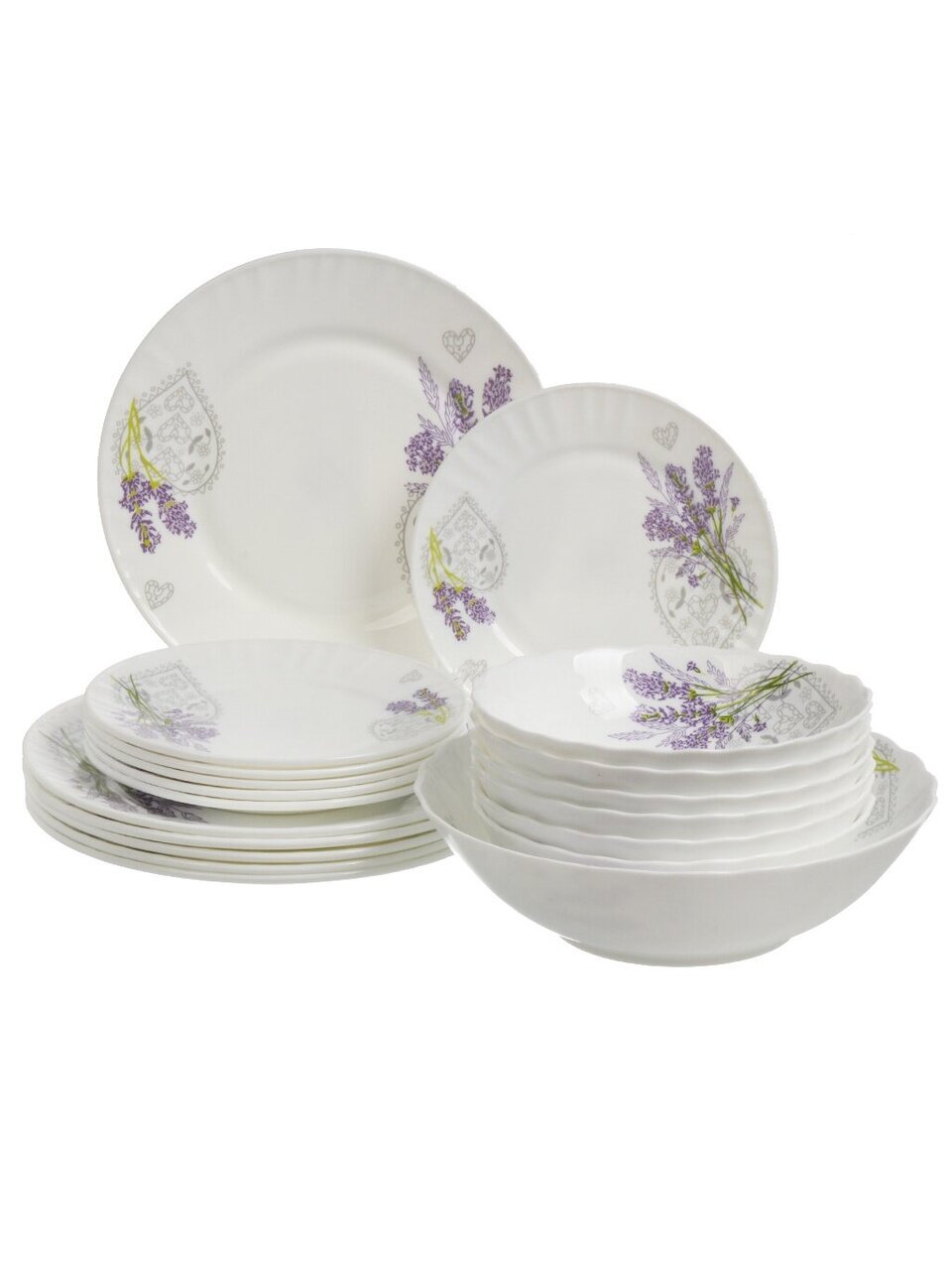 Столовый сервиз из стеклокерамики «Лаванда 1/2» на 6 персон — 19 предметов для стильной сервировки дома, дачи или подарка. Подходит для СВЧ и посудомоечной машины.