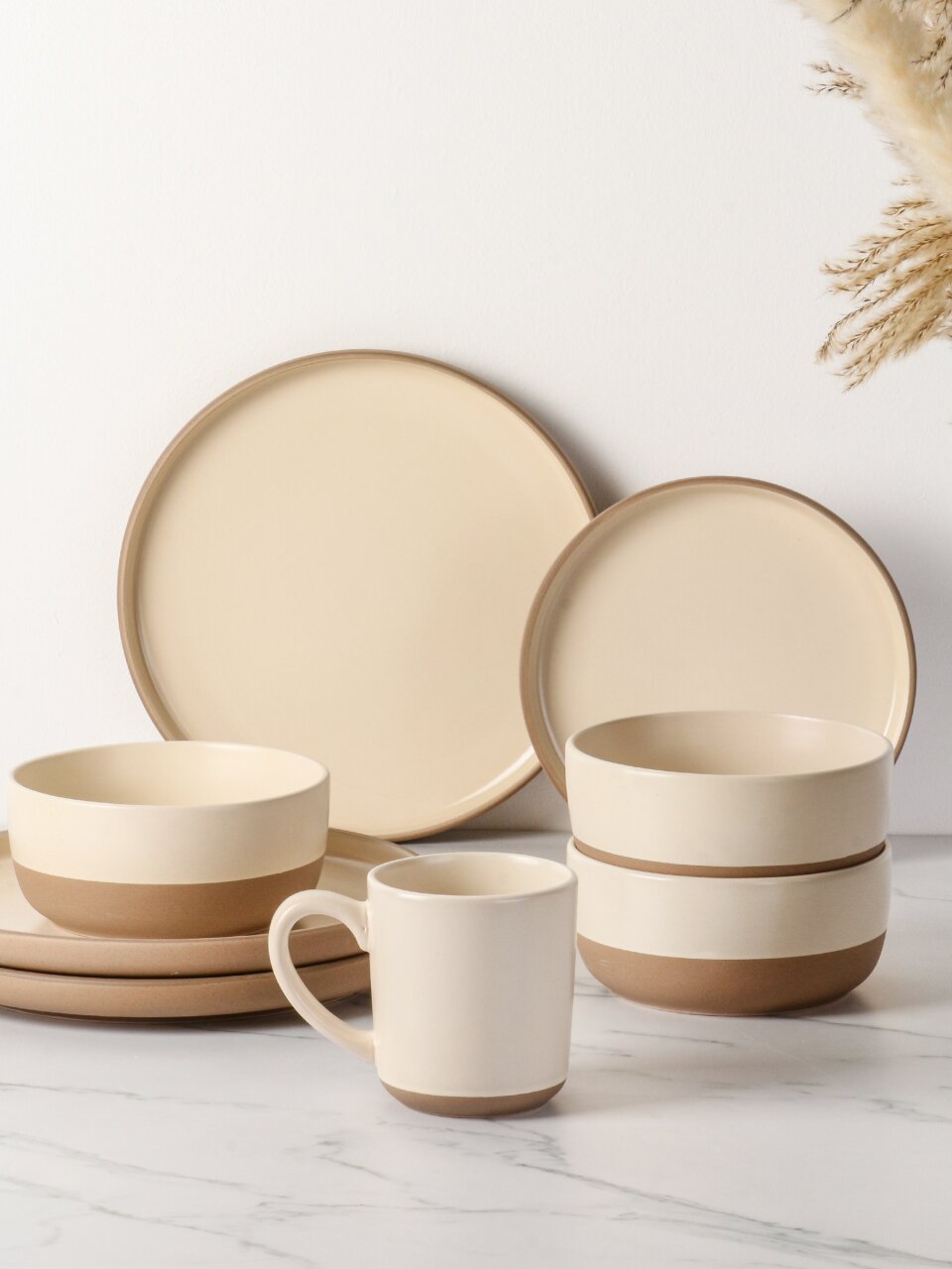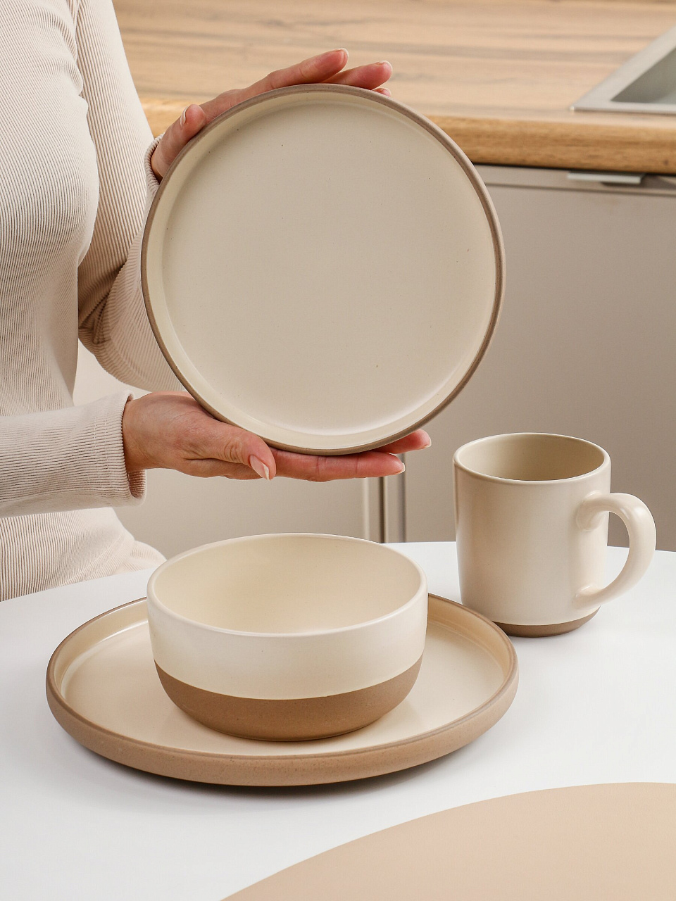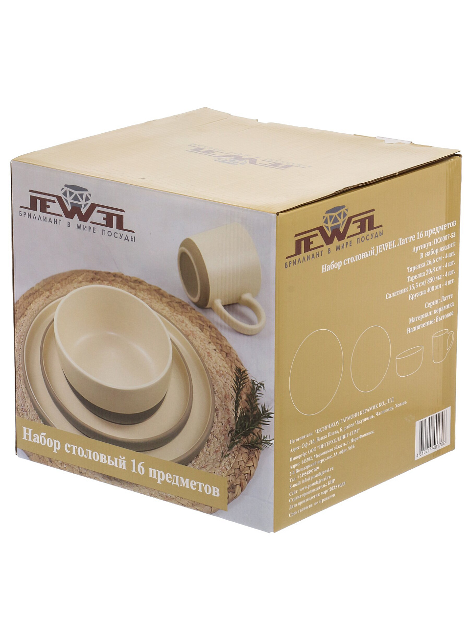 Столовый сервиз Jewel Латте на 4 персоны — 16 предметов из премиальной керамики: элегантный подарок и практичное решение для стильной сервировки дома или на даче.