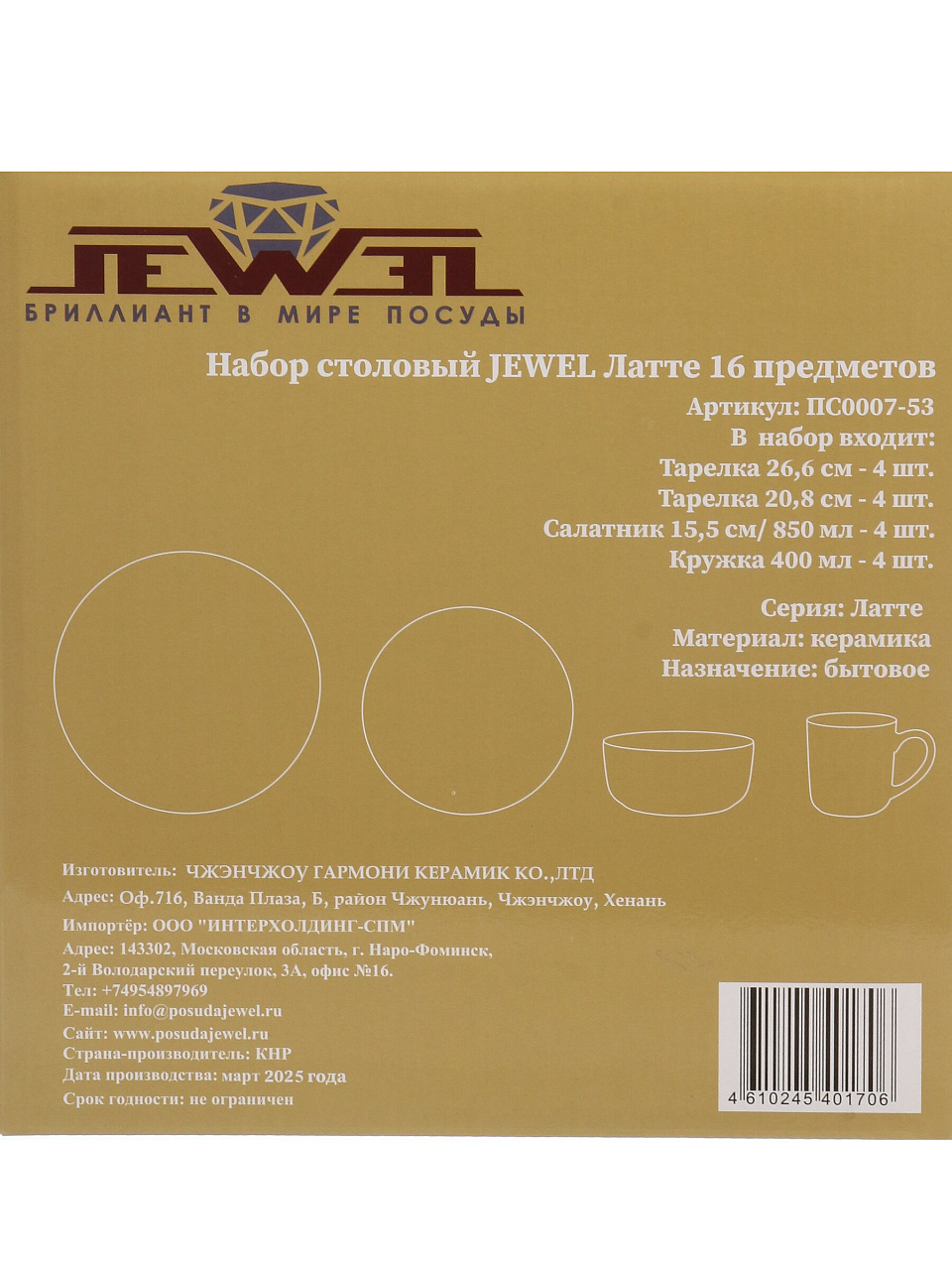 Вы можете приобрести «Сервиз столовый керамика, 16 предметов, на 4 персоны, Jewel, Латте, ПС0007-53» и другие товары в нашем интернет-магазине в Ярославле по низким ценам и с бесплатным самовывозом.