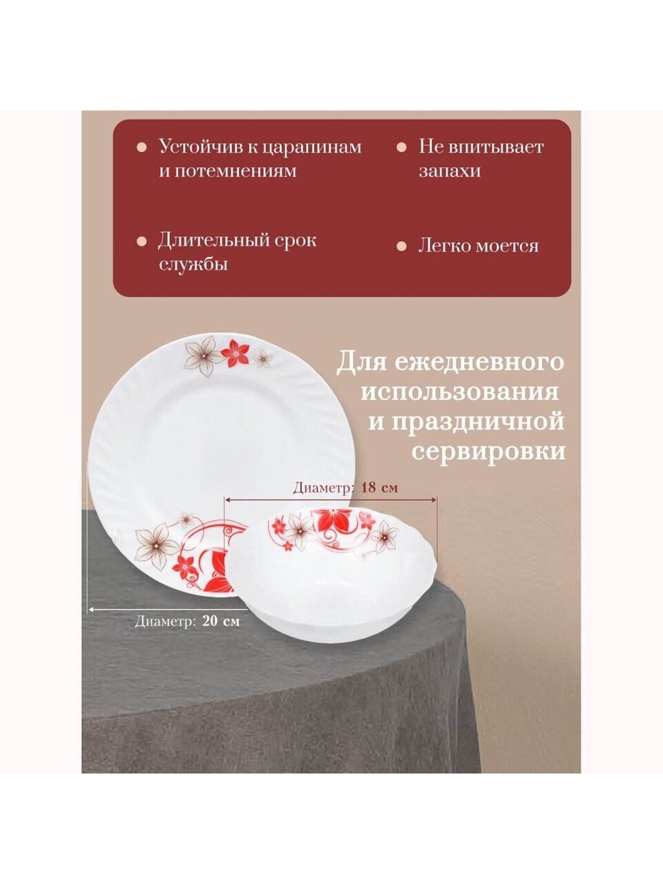 Столовый сервиз из стеклокерамики Daniks Кармен на 6 персон — это идеальное решение, если вы ищете, какой сервиз выбрать для повседневного использования или праздничных случаев. Белоснежный цвет и лаконичный дизайн гармонируют с любой сервировкой, а стеклокерамика отличается высокой прочностью и устойчивостью к царапинам. Часто спрашивают, чем отличается стеклокерамика от фарфора: она легче, не впитывает запахи и выдерживает резкие перепады температур, что делает сервиз подходящим для использования в СВЧ и посудомоечной машине.