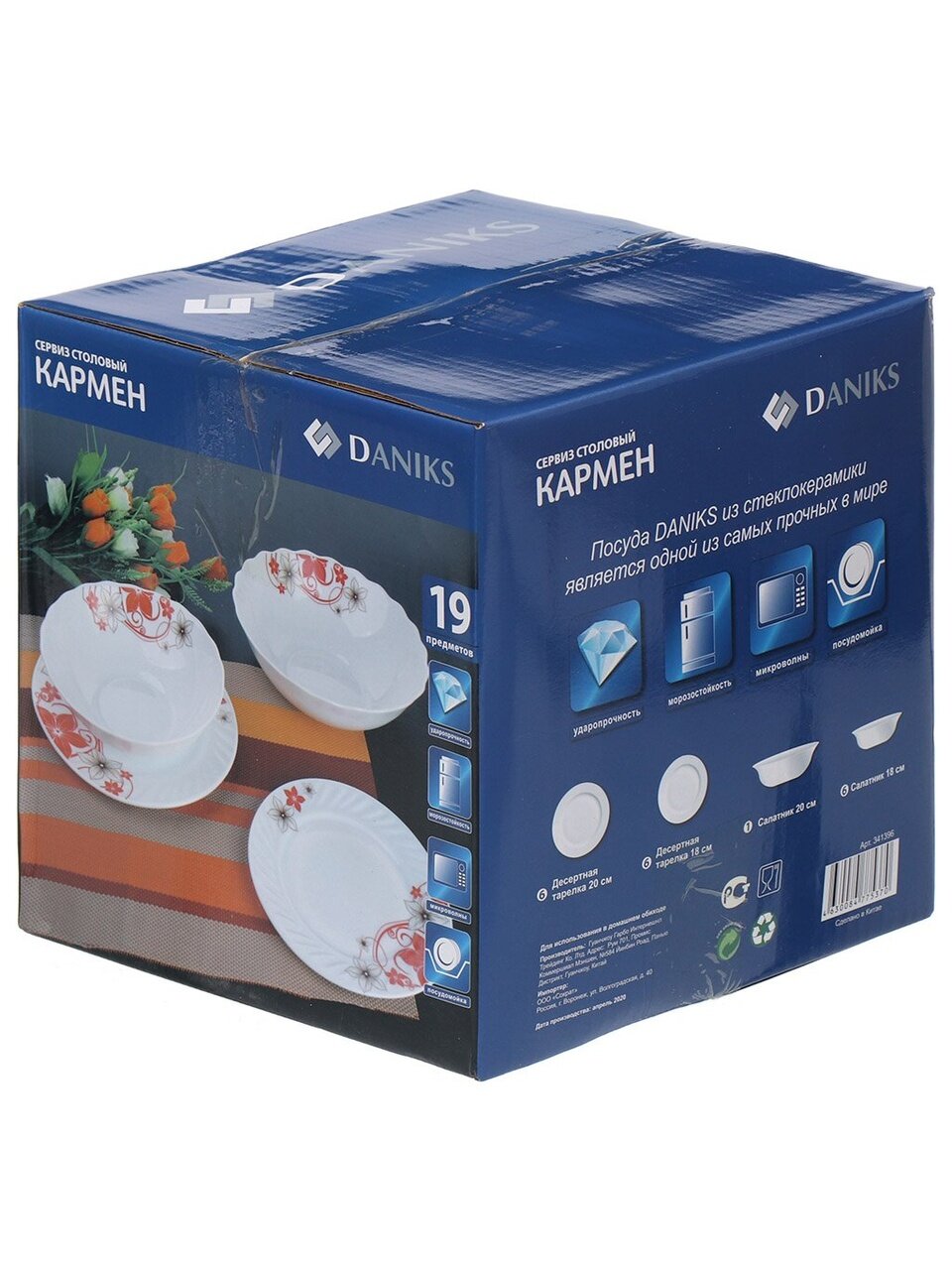 Сервиз столовый стеклокерамика Daniks Кармен: 19 предметов на 6 персон, белый — для стильных ужинов дома и на даче. Прочность, универсальность, подарок с заботой.