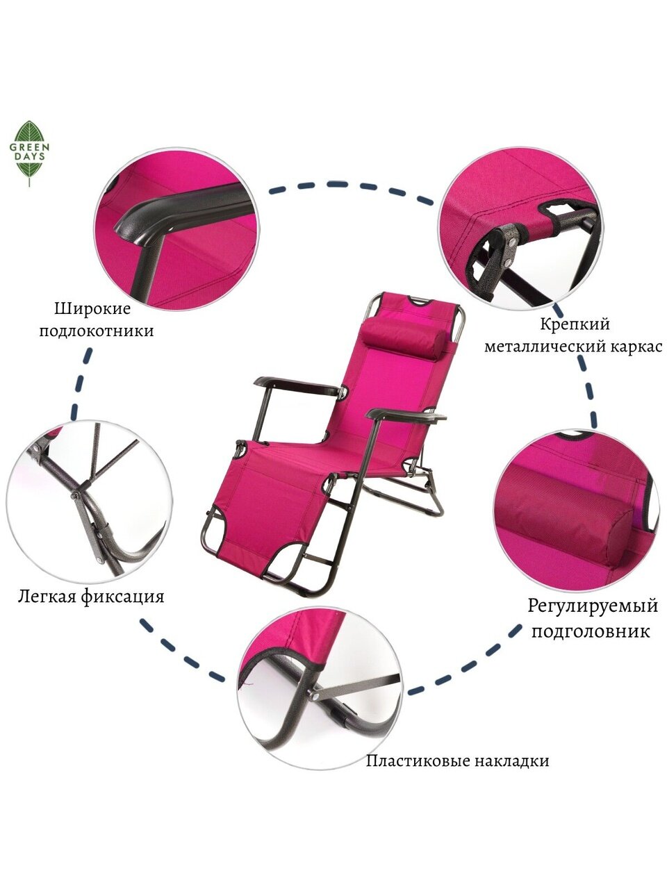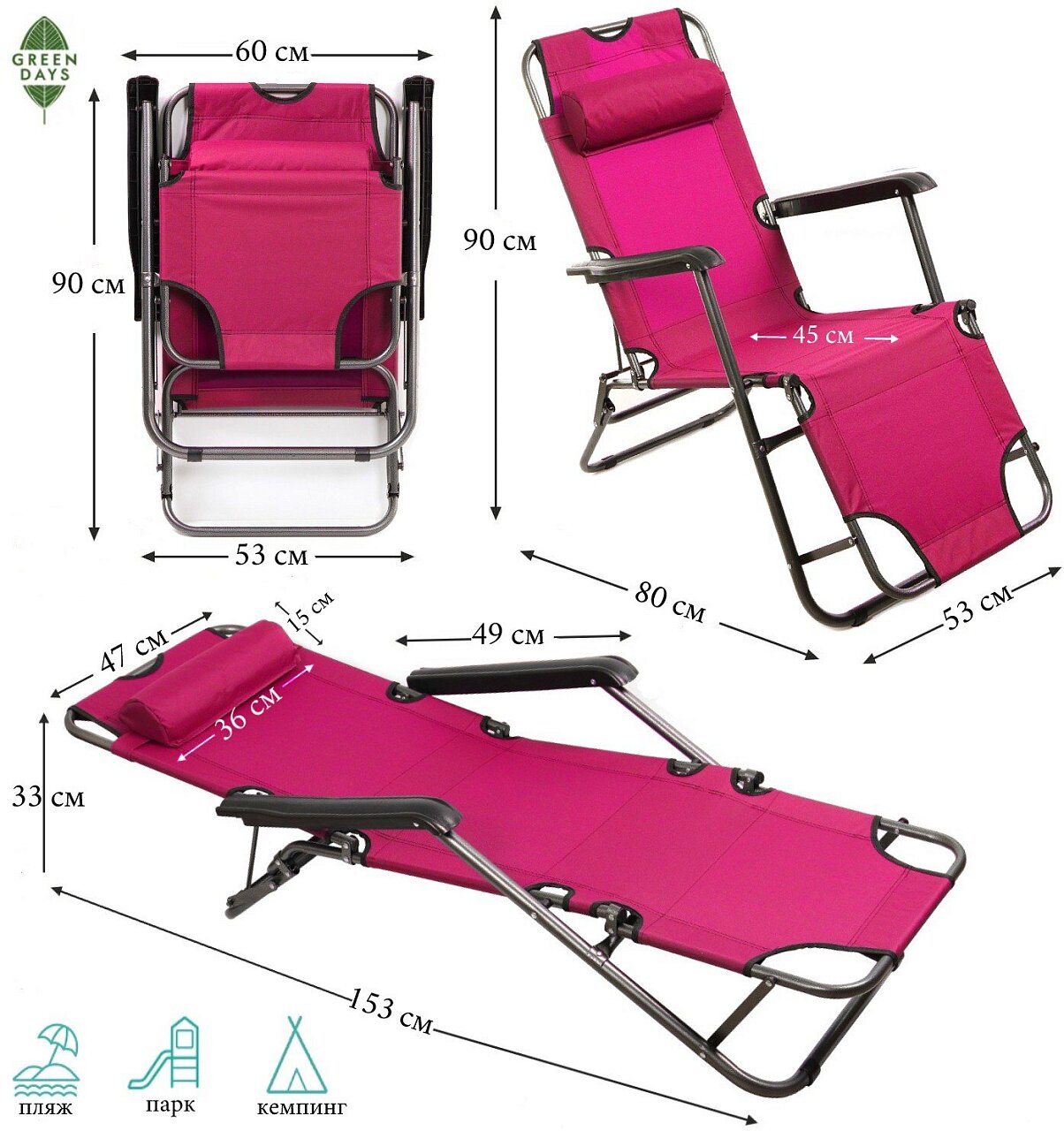 Вы можете приобрести «Шезлонг пляжный складной, металл, 153х60х80 см, 100 кг, 2 положения спинки, розовый, Green Days» и другие товары в нашем интернет-магазине в Казани по низким ценам и с бесплатным самовывозом.