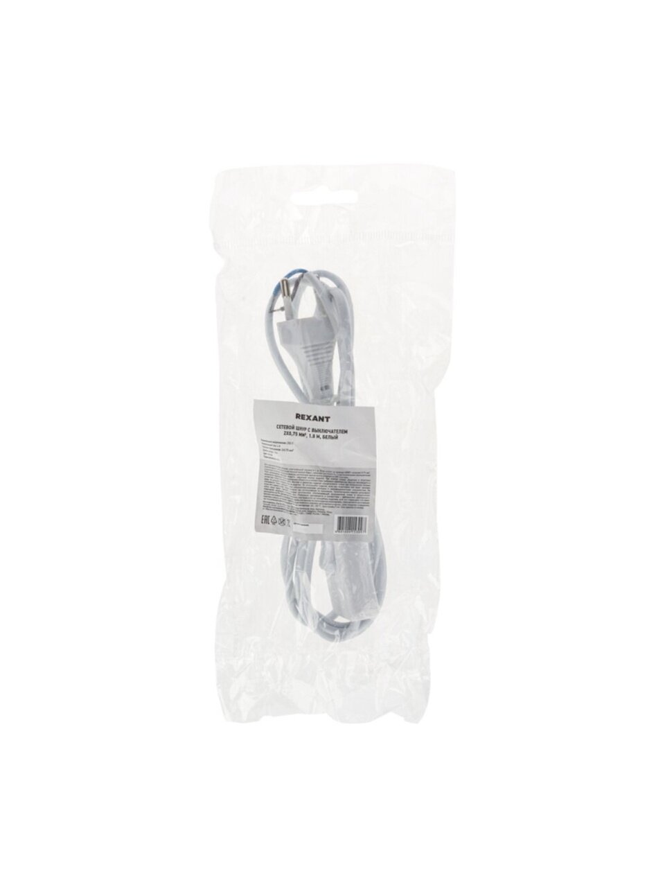 Вы можете приобрести «Шнур сетевой Rexant, ШВВП, 2 жилы, 0.75 мм², 1.8 м, белый, с выключателем, 11-1133» и другие товары в нашем интернет-магазине в Клинцах по низким ценам и с бесплатным самовывозом.