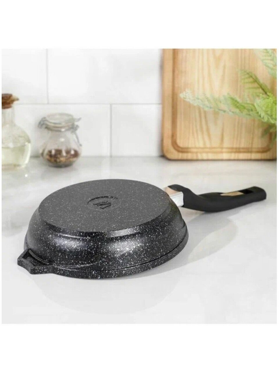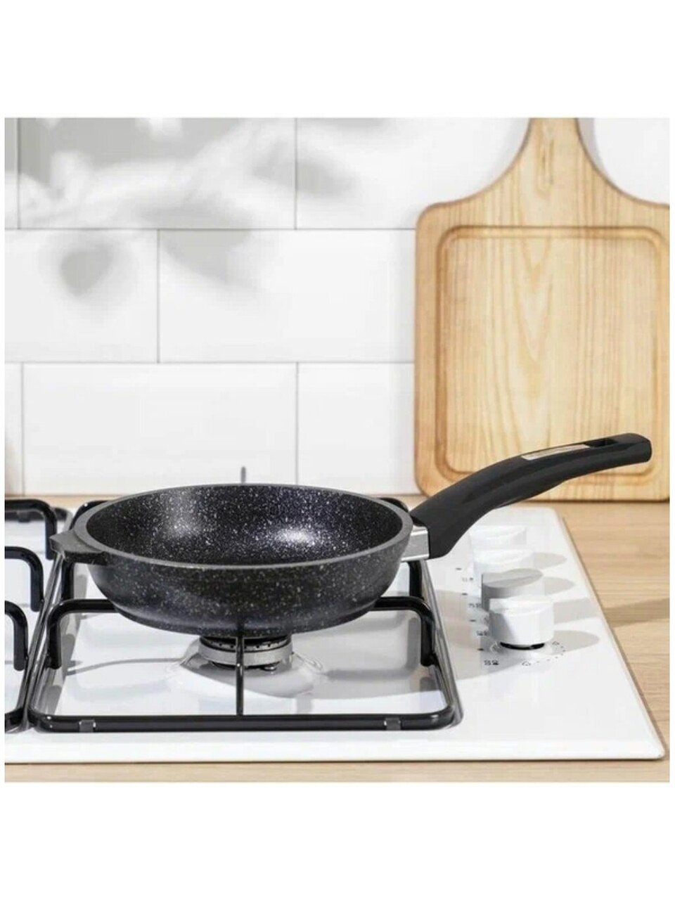 Многие спрашивают: «Как выбрать сковороду для индукционной плиты?» или «Чем отличается гранитное покрытие от обычного?» Данная модель не подходит для индукции, но отлично работает на газовых, электрических, стеклокерамических и галогеновых плитах. В отличие от классических тефлоновых вариантов, гранитное покрытие более устойчиво к царапинам и выдерживает интенсивную эксплуатацию.