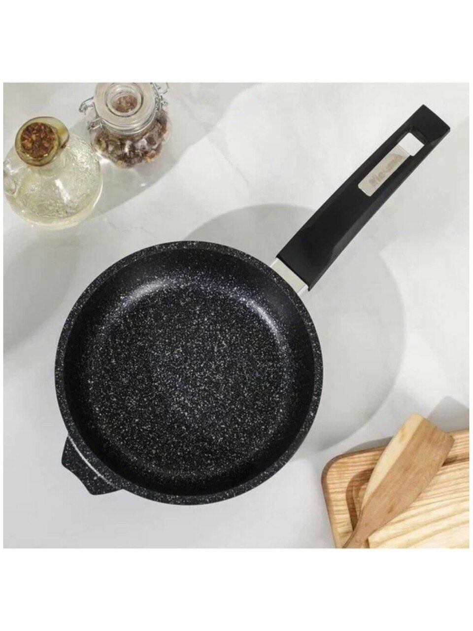 Сковорода «Мечта Гранит star» диаметром 18 см — это практичный выбор для тех, кто ценит удобство и безопасность на кухне. Благодаря литому алюминию и толстому дну (6 мм), тепло распределяется равномерно, что предотвращает подгорание и позволяет готовить блюда с минимальным количеством масла. Гранитное антипригарное покрытие обеспечивает легкую очистку и долгий срок службы, что особенно важно для частого использования.