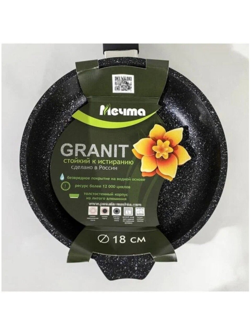 Сковорода литой алюминий 18 см с антипригарным покрытием «Мечта Гранит star» — идеальный выбор для здорового и быстрого приготовления блюд без лишнего масла. Толстое дно 6 мм, долговечность и универсальность для дома и дачи.