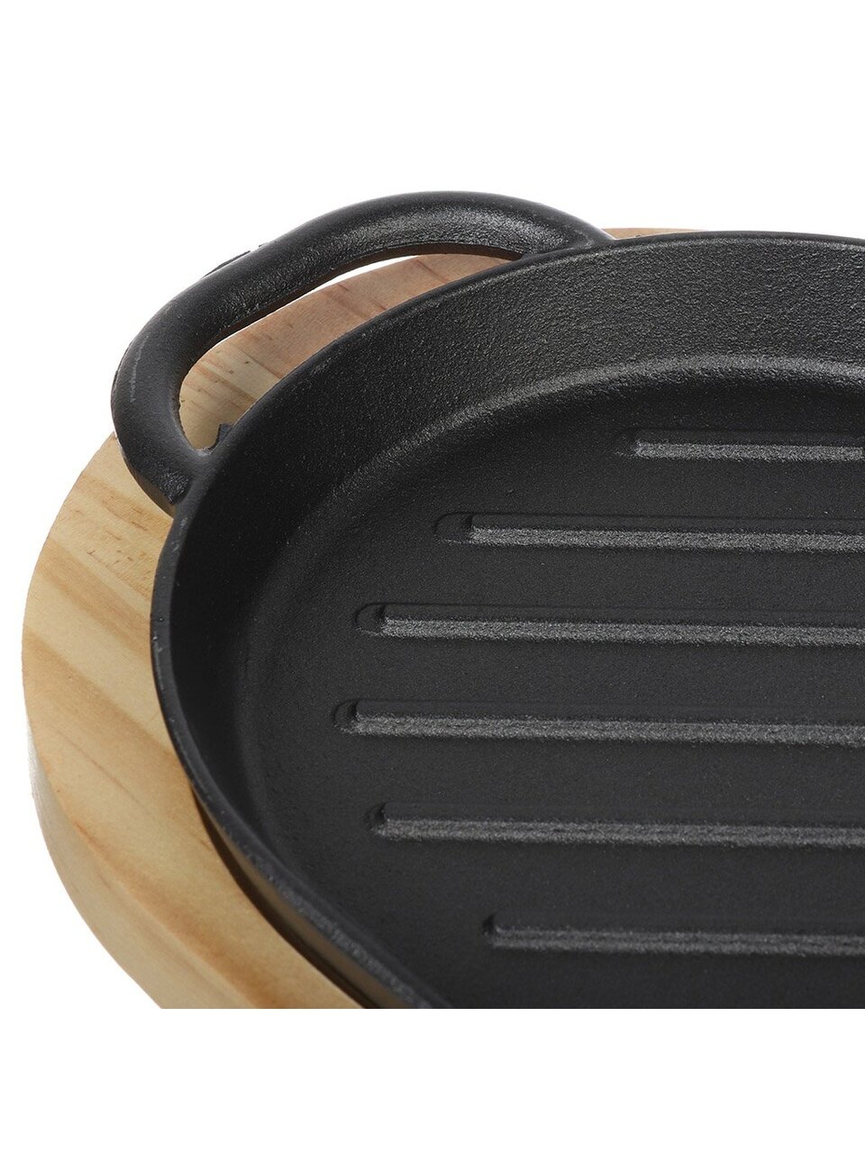 В отличие от аналогов с антипригарным слоем, чугунная сковорода служит десятилетиями, не выделяет вредных веществ и легко восстанавливается после очистки. Бамбуковая подставка защищает столешницу от жара — удобно подавать блюда сразу после жарки. Часто спрашивают, подходит ли такая сковорода для индукционных плит — нет, только для газовых, электрических, стеклокерамических, духовок и открытого огня. Как использовать: предварительно прокалите сковороду, смажьте маслом, и вы получите эффект гриля без лишнего жира.