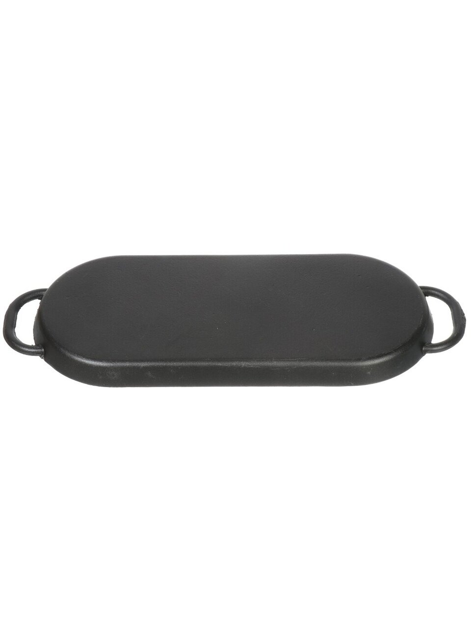 Размер 37.8х16.6х2 см, овальная форма, диаметр дна 34,5 см. Подходит для жарки мяса, рыбы, курицы на газовых, электрических, стеклокерамических плитах, в духовке и на открытом огне.