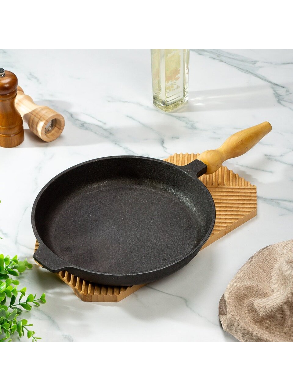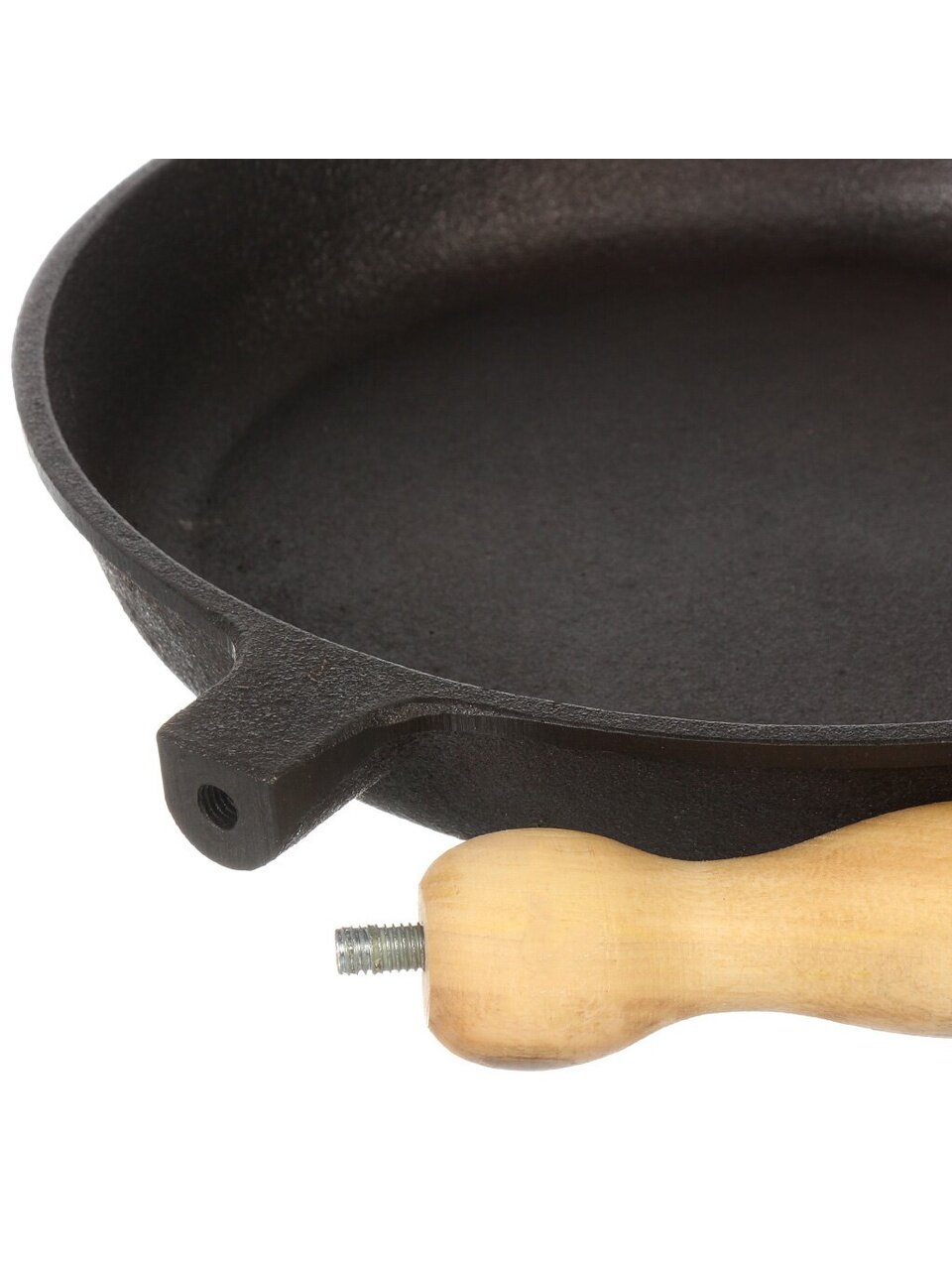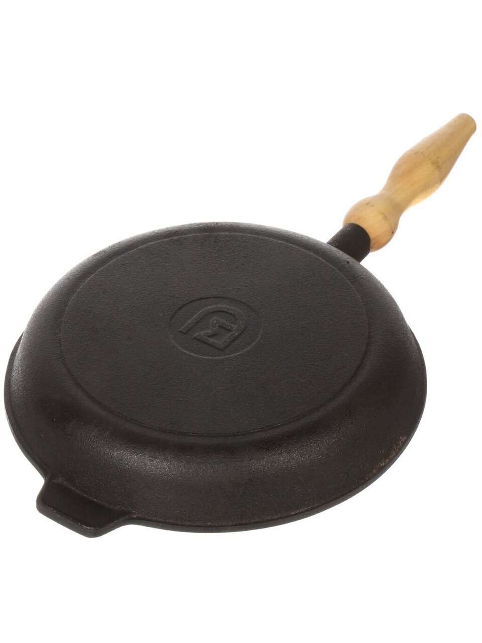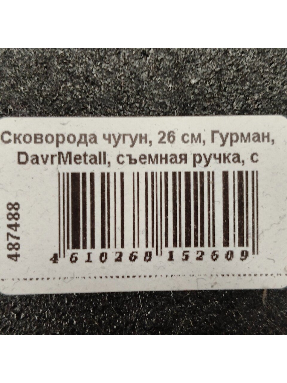 Чугунная сковорода 26 см Гурман DavrMetall: съемная ручка, подходит для индукции, долговечность 36 месяцев — идеальный выбор для дома и дачи.