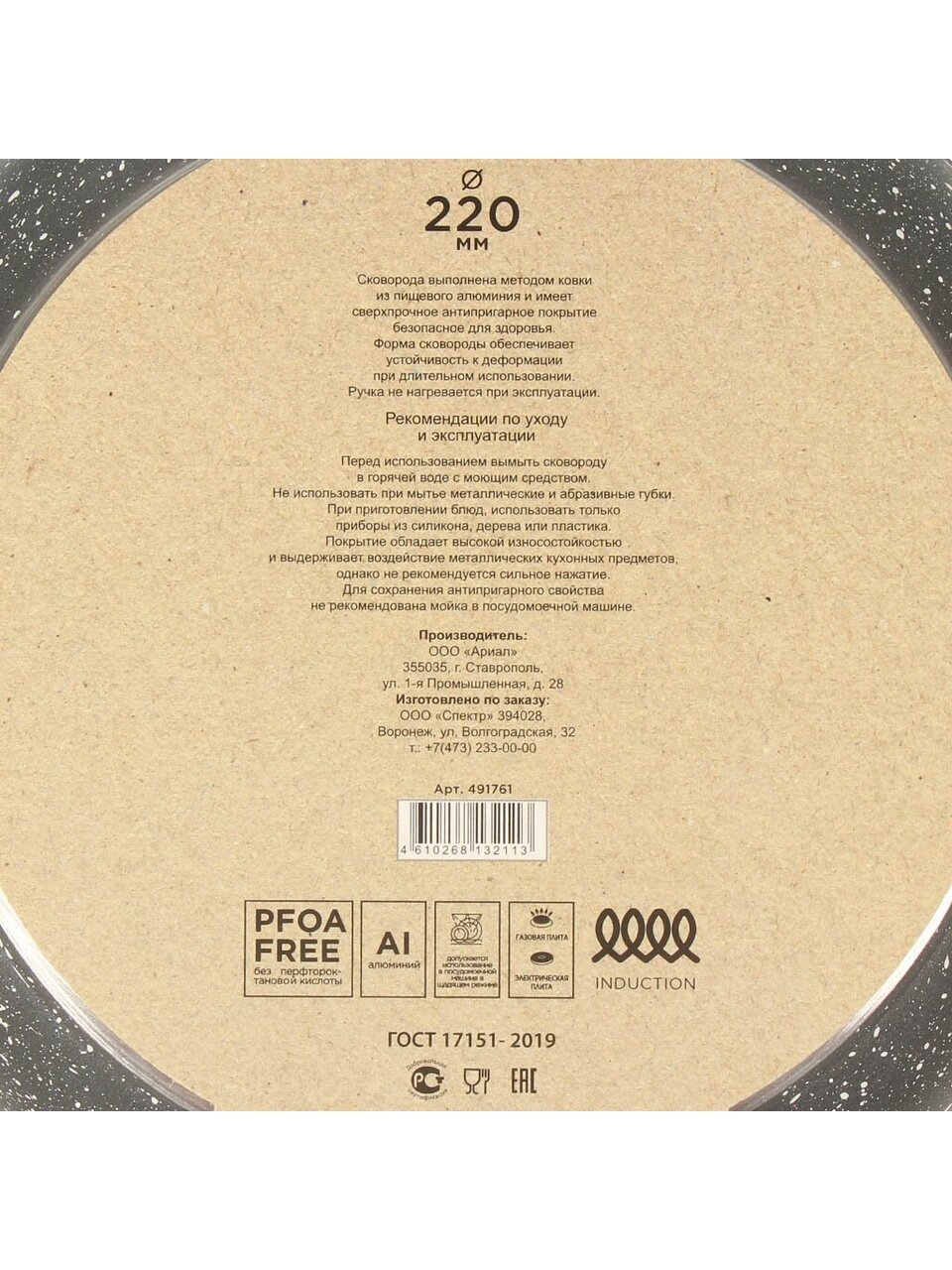 - Оптимальный размер 22 см, легкий алюминий, толщина дна 3 мм — равномерный нагрев и долгий срок службы (гарантия 36 мес.)