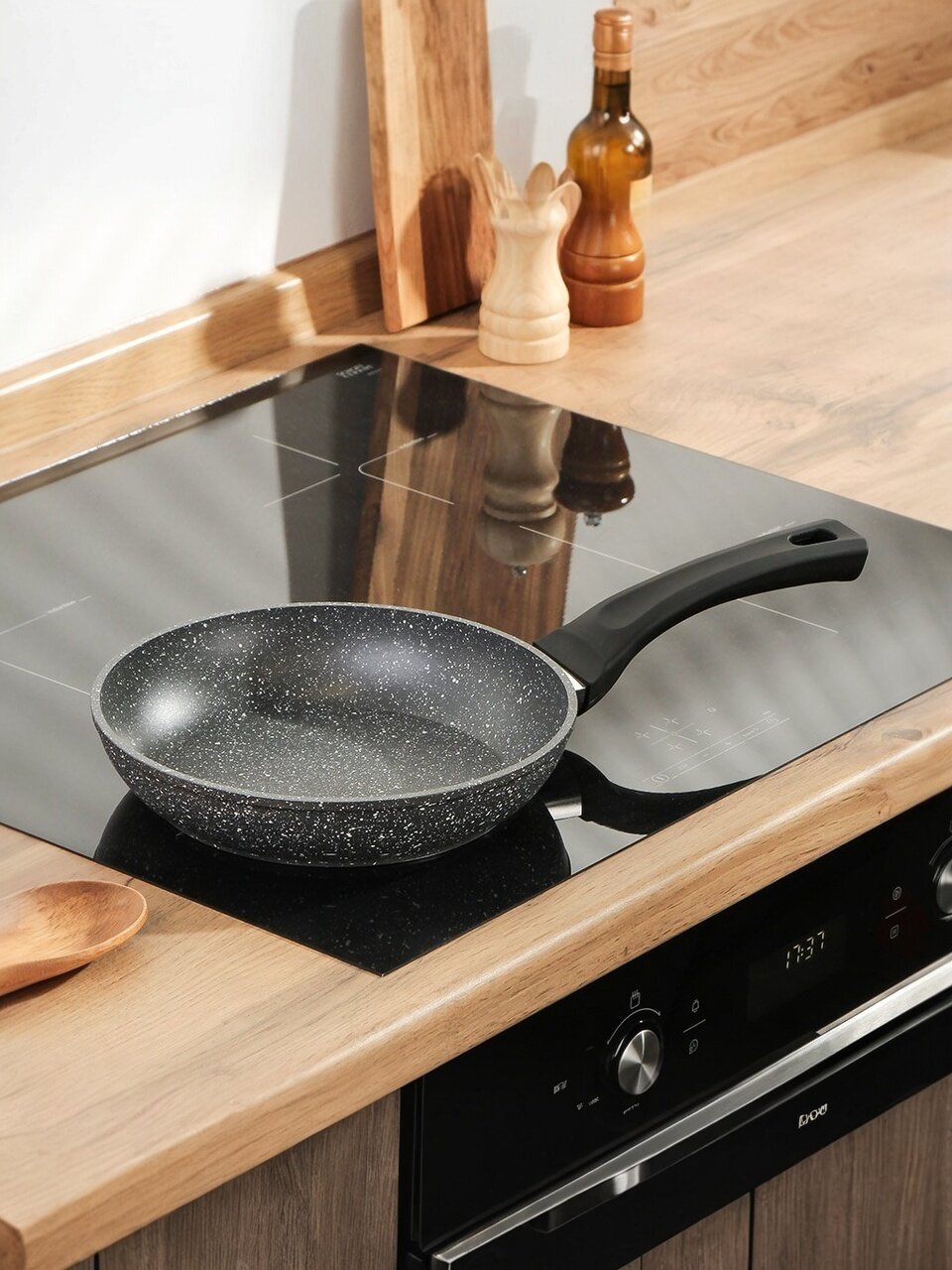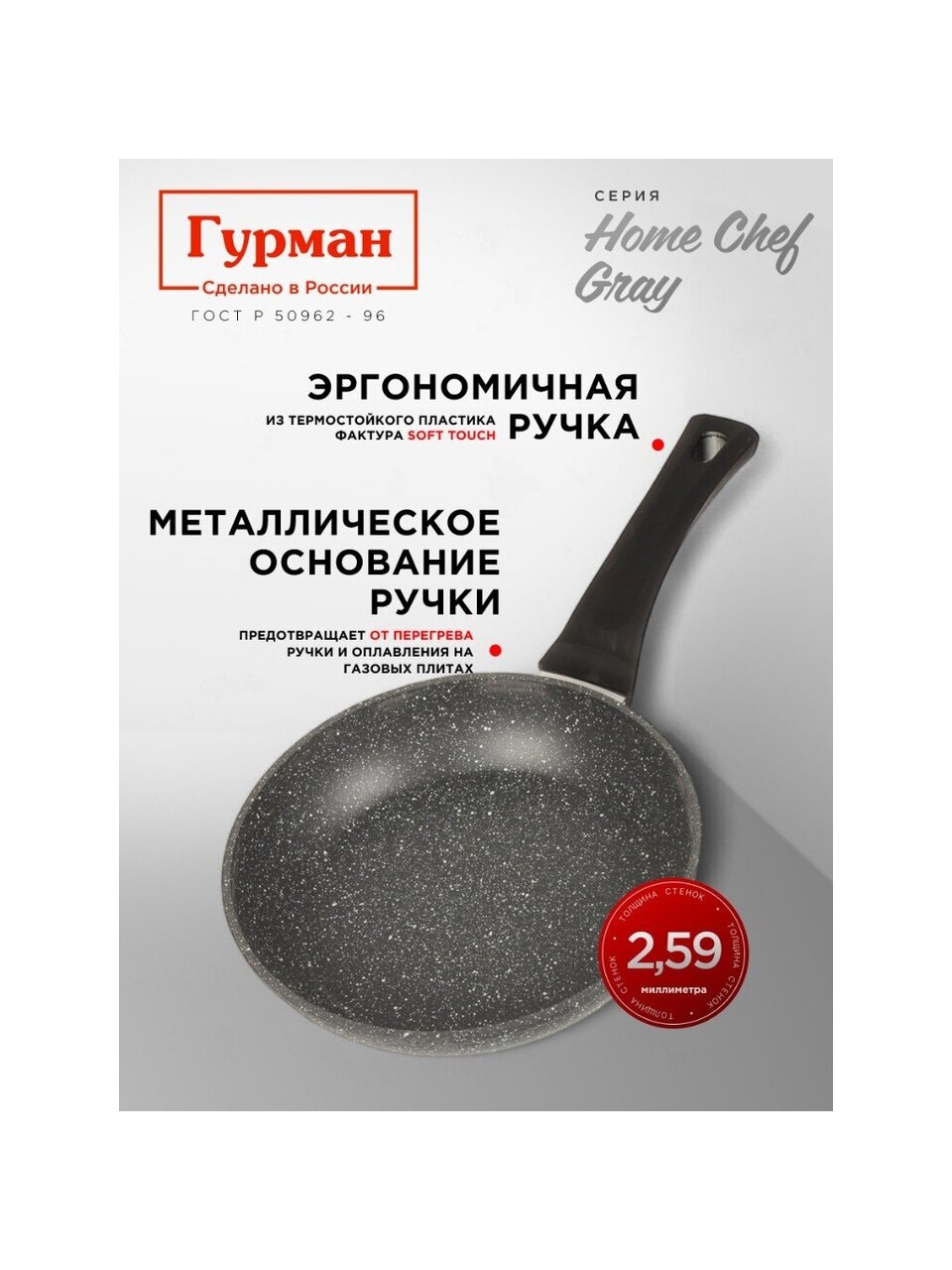 Если вы ищете, какую сковороду выбрать для индукционной плиты или хотите купить недорого сковороду 22 см для дачи, обратите внимание на модель HomeChef Gray от бренда Гурман. Благодаря алюминиевому корпусу и инновационному покрытию PFLUON, эта сковорода быстро нагревается и сохраняет тепло, что экономит электроэнергию и время. Антипригарный слой позволяет готовить с минимальным количеством масла, а диаметр 22 см идеален для жарки мяса, рыбы, яичницы или оладий на семью из 2-3 человек.