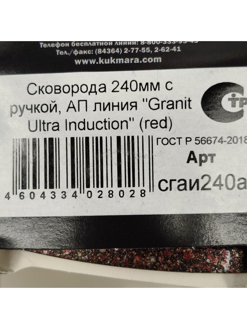 Сковорода Kukmara Granit Ultra Red Induction 24 см: антипригарная поверхность, прочный алюминий, подходит для индукции. Готовьте мясо, рыбу и овощи легко!