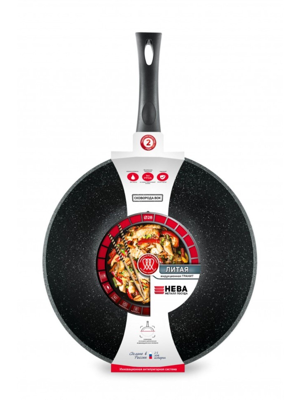 Сковорода-вок Нева Металл Гранит 28 см: идеальное решение для индукционных плит, антипригарное покрытие «под камень», долговечность и универсальность.