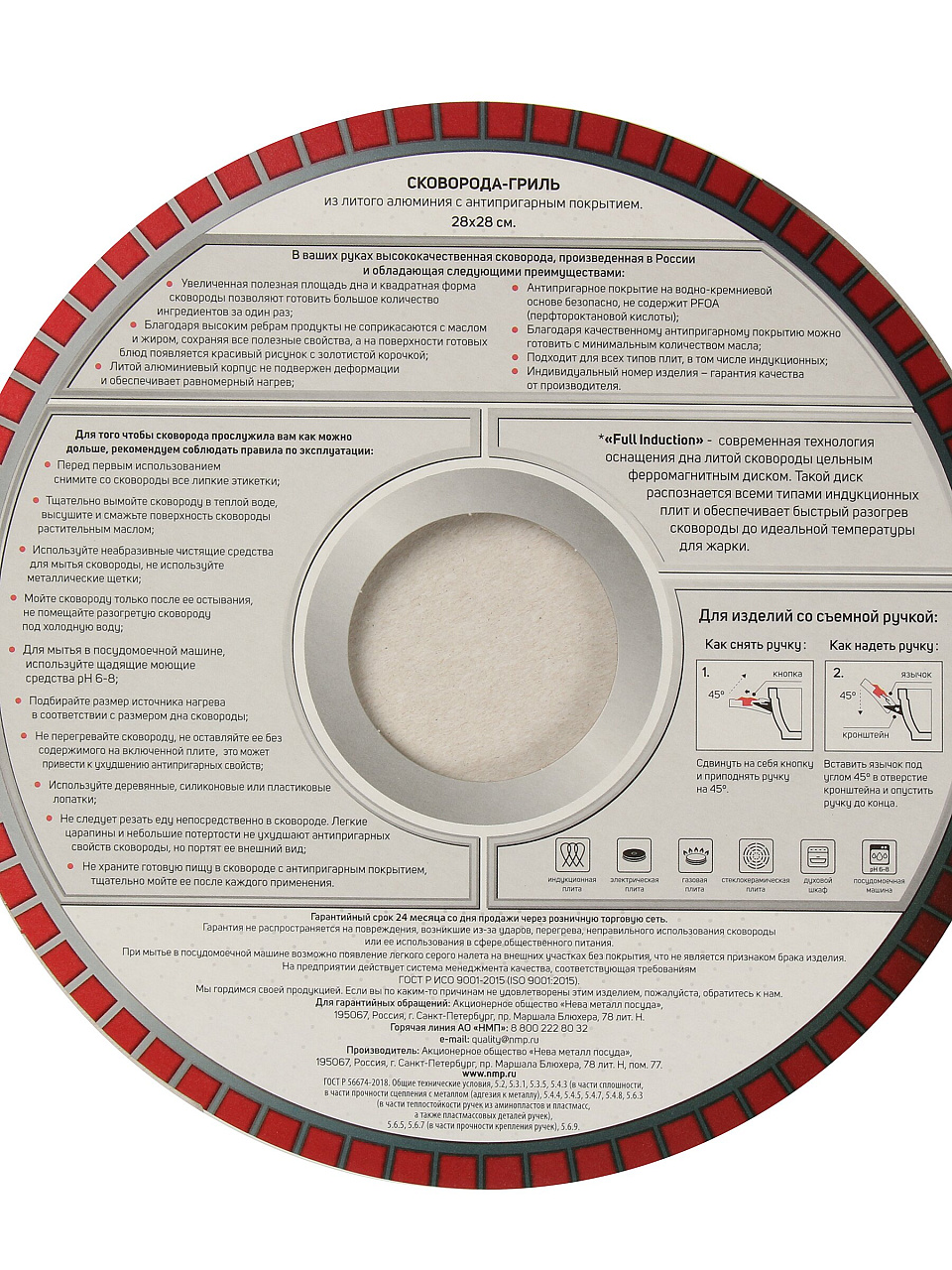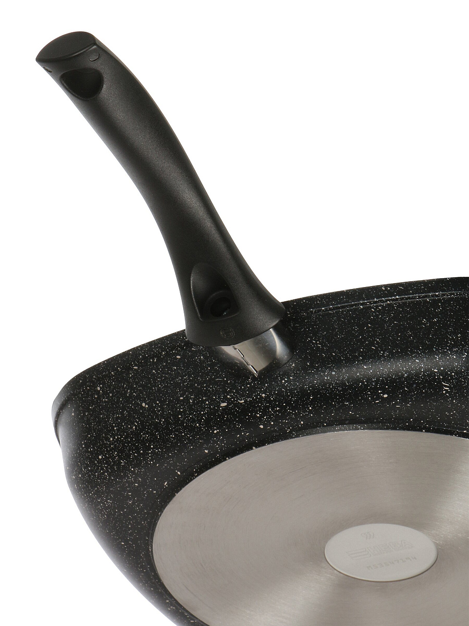- Оптимальный размер 28 см: подойдет для семьи, готовки мяса, рыбы, овощей; совместимость с индукцией и всеми плитами