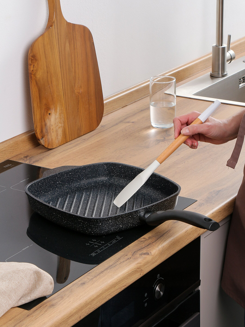 Часто спрашивают: «Как выбрать сковороду-гриль для индукционной плиты?» или «Подходит ли для жарки без масла?» — данная модель совместима с индукцией, газом, стеклокерамикой и электричеством. В отличие от классических стальных сковород, литая алюминиевая легче, быстрее нагревается и не требует долгой подготовки к работе. При выборе между разными вариантами обратите внимание на толщину дна и покрытие — здесь они оптимальны для частого использования и легкой чистки.