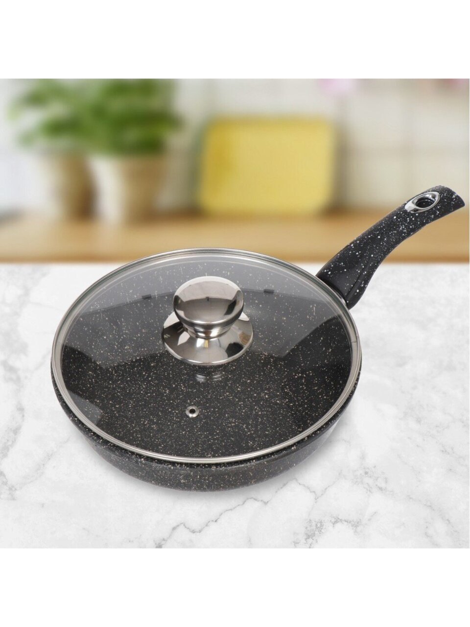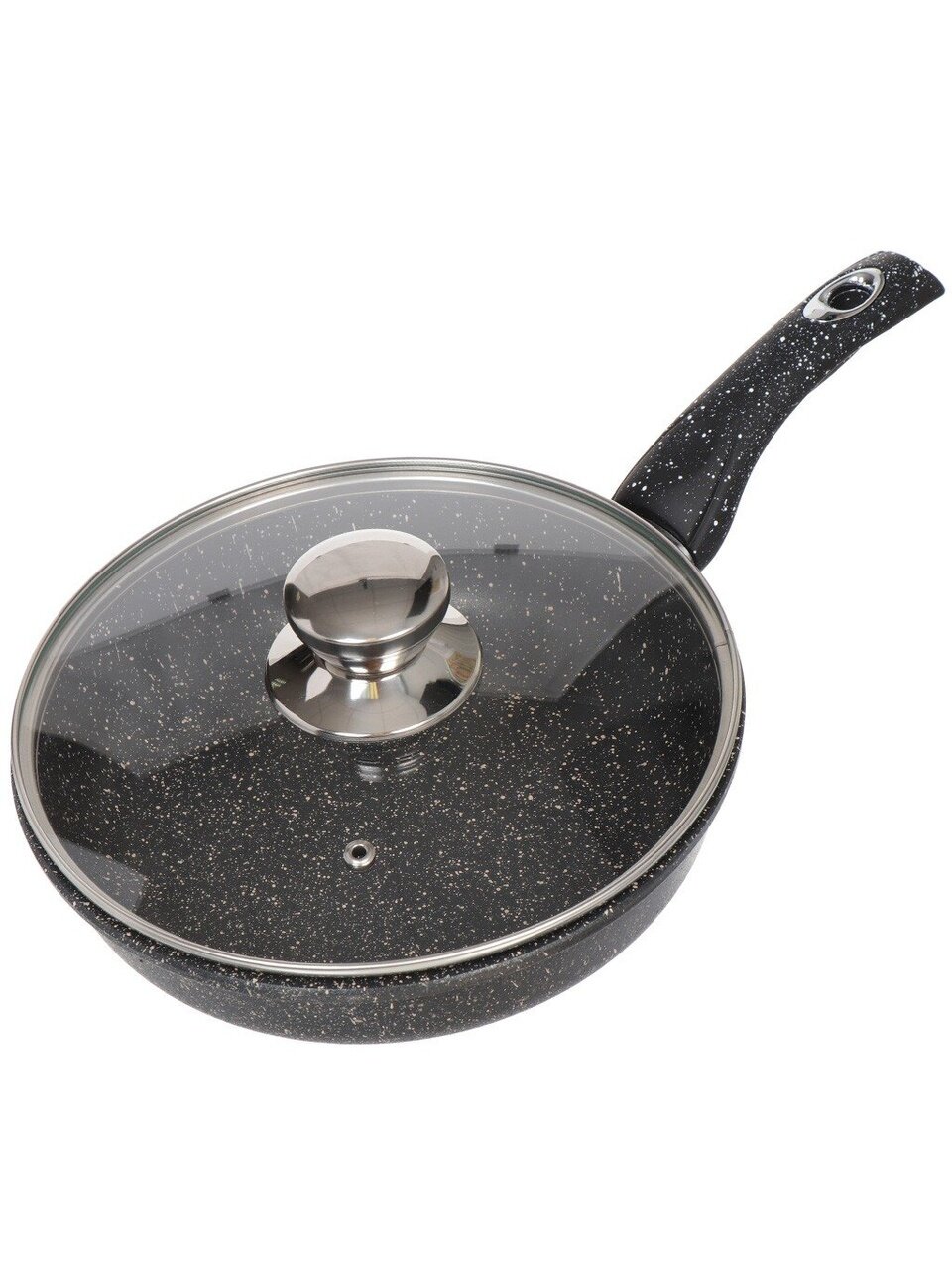 Литая сковорода Горница Гранит 22 см с антипригарным мраморным покрытием — долговечное решение для идеальной жарки и легкой уборки. В комплекте крышка.