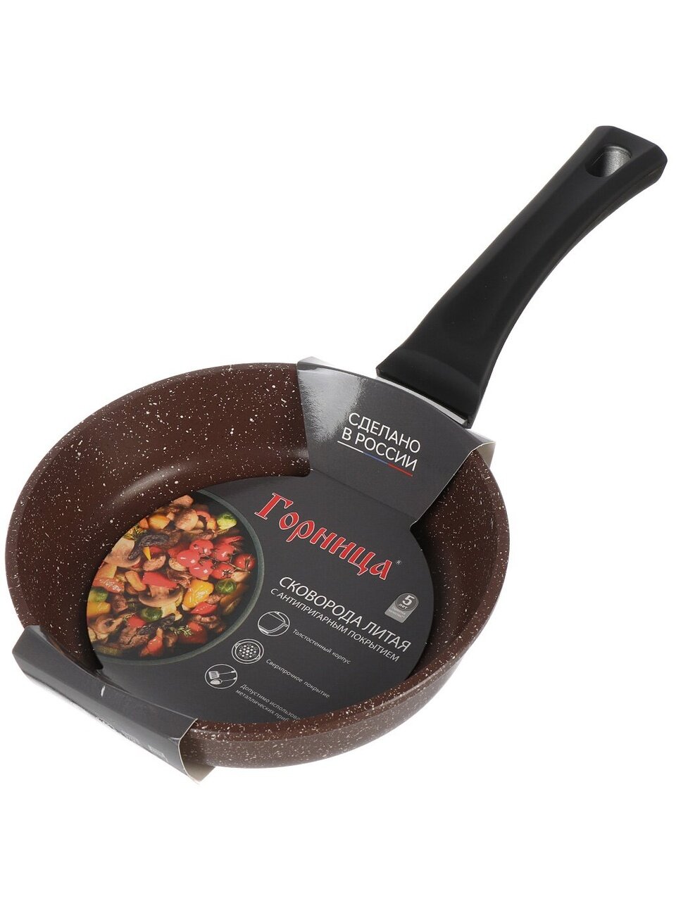 Оформите заказ на сковороду из литого алюминия Горница Шоколад — получите универсальный инструмент для вкусной и быстрой готовки с гарантией 60 месяцев и выгодной ценой.