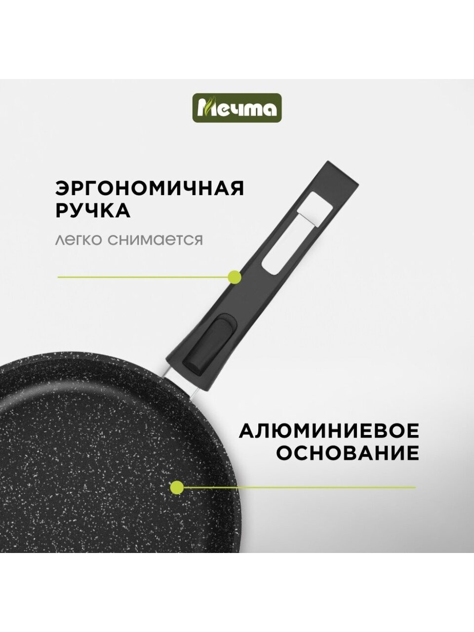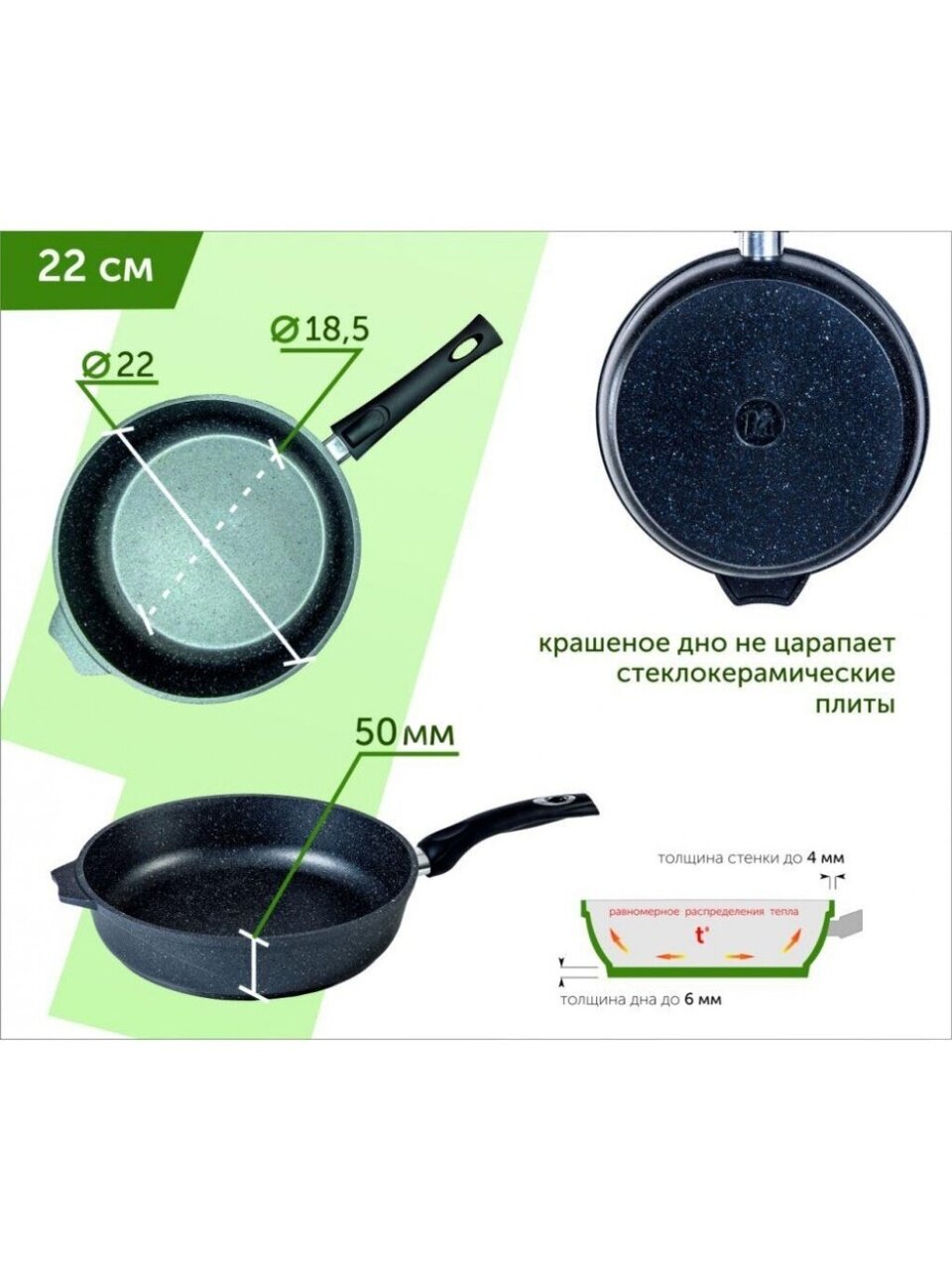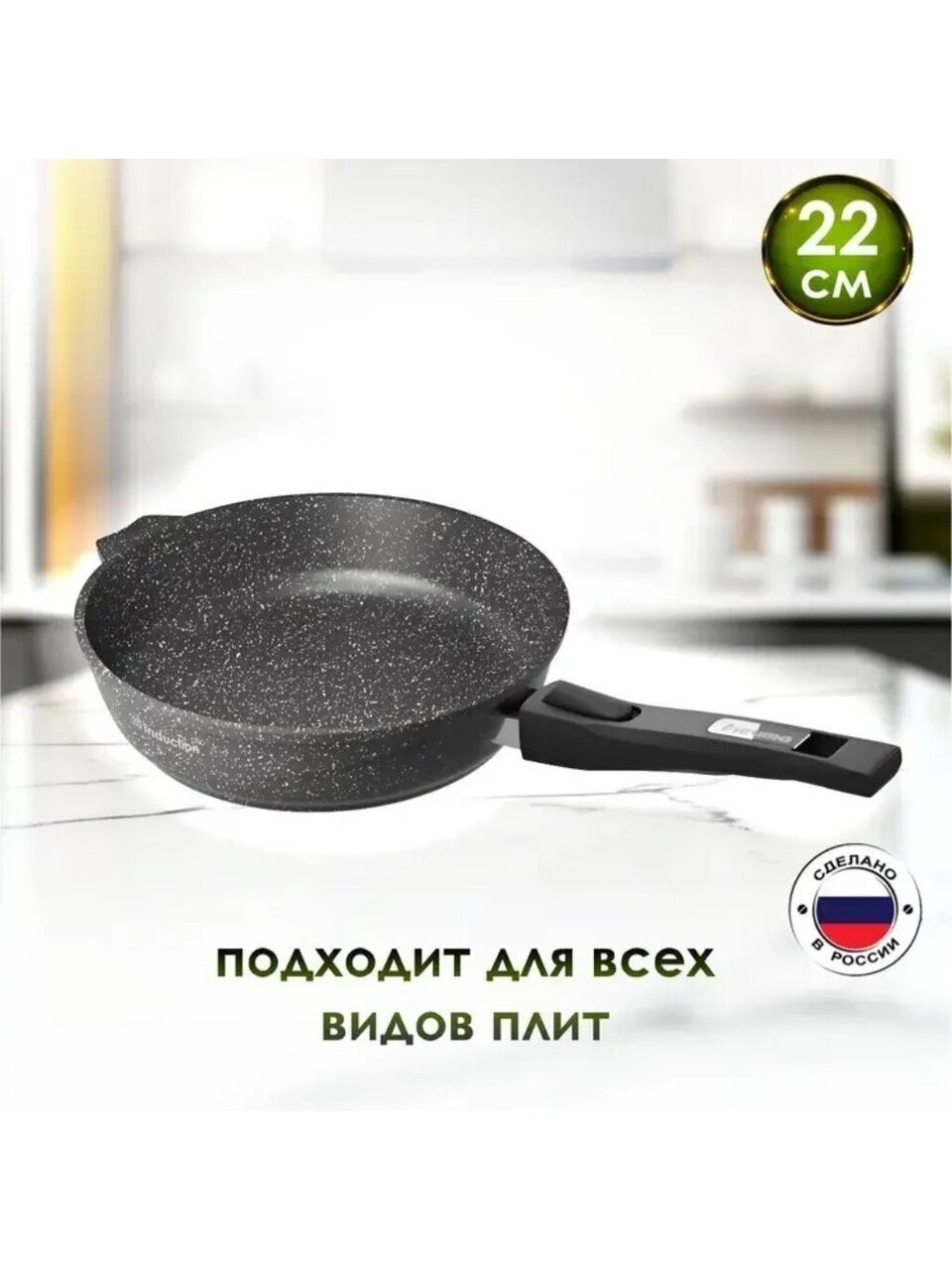 Сковорода 22 см из литого алюминия Мечта Гранит Black Induction Pro: идеальный выбор для индукции, антипригарное покрытие, съемная ручка, долговечность и стиль.