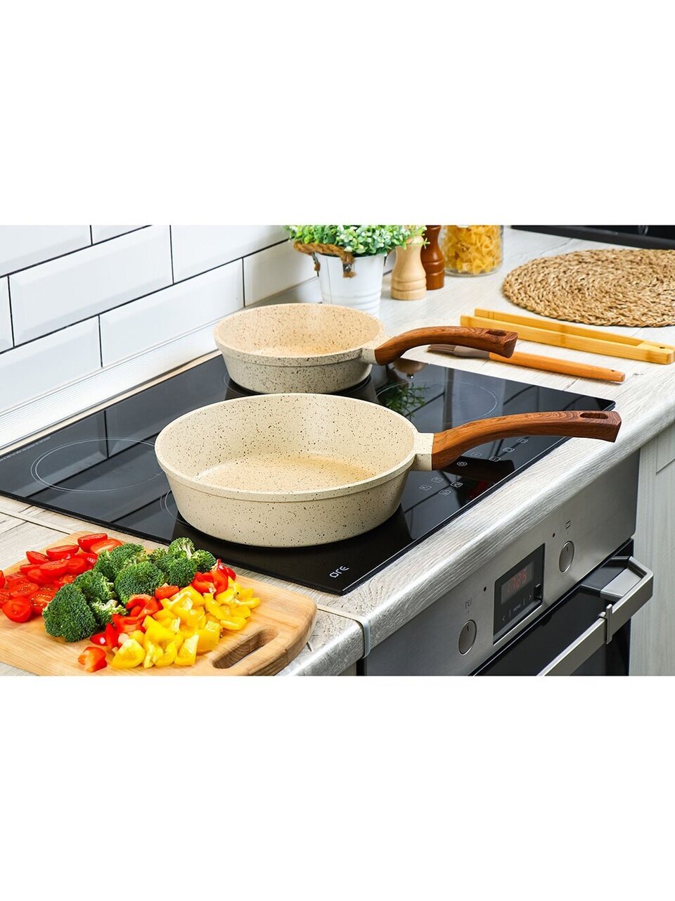 В отличие от тонкостенных аналогов, литой алюминий сохраняет тепло дольше, а гранитное покрытие устойчиво к царапинам и легко очищается, даже в посудомоечной машине. Если вы ищете, какую сковороду выбрать для дачи или подарка, обратите внимание на сочетание практичности, эстетики (бежевый цвет) и долговечности (гарантия 36 месяцев). Часто спрашивают: «Как использовать сковороду без крышки?» — высокая бортовая часть (60 мм) делает её удобной для жарки и тушения.