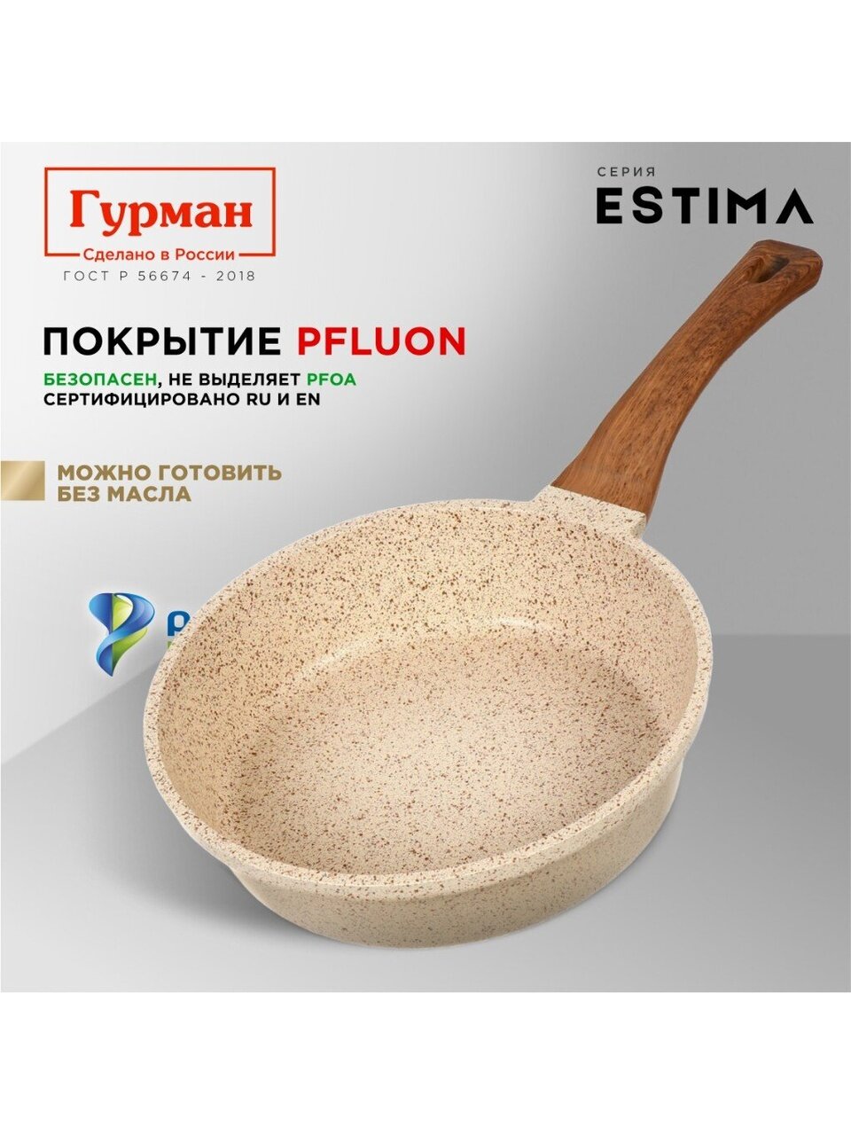Вы можете приобрести «Сковорода литой алюминий, 24 см, антипригарное покрытие, Гурман, Estima, бежевая, индукция, ГМ2401 ЭБИ» и другие товары в нашем интернет-магазине в Астрахани по низким ценам и с бесплатным самовывозом.
