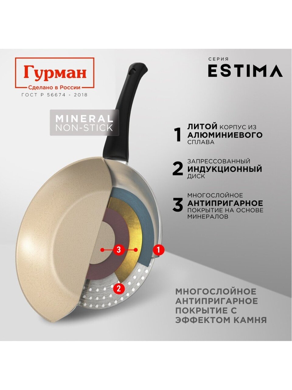 Сковорода Estima — это выгодное решение для тех, кто ценит комфорт, экономию времени и универсальность. Закажите сейчас, чтобы получить современную посуду с гарантией от производителя и бесплатной доставкой при покупке онлайн.