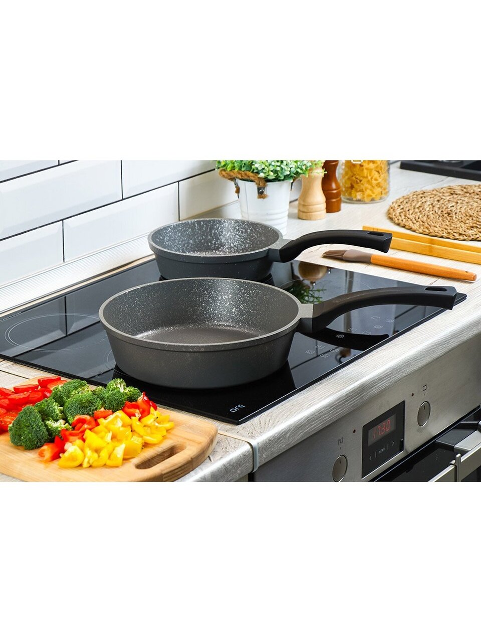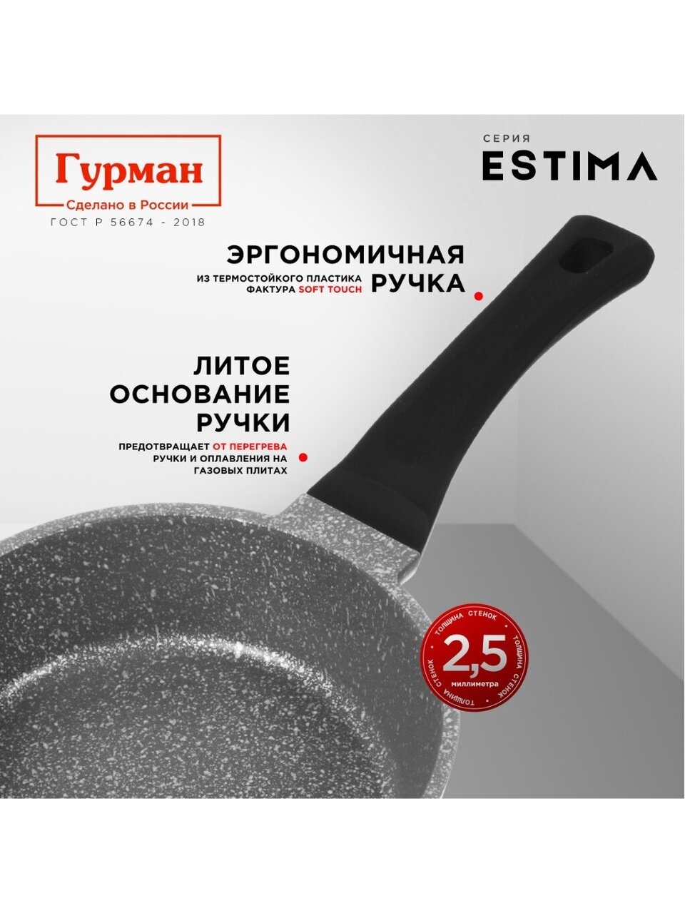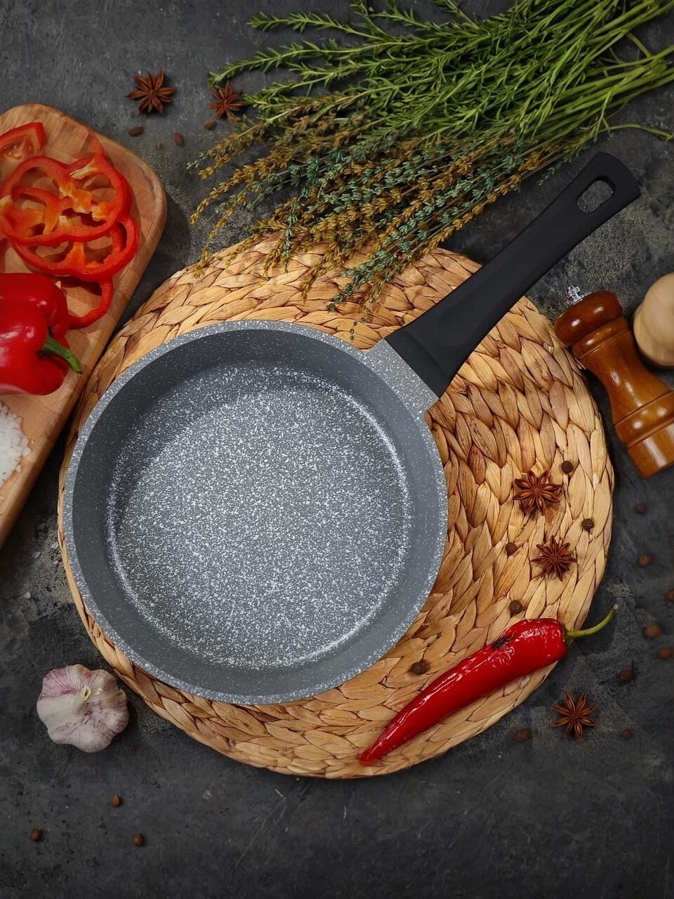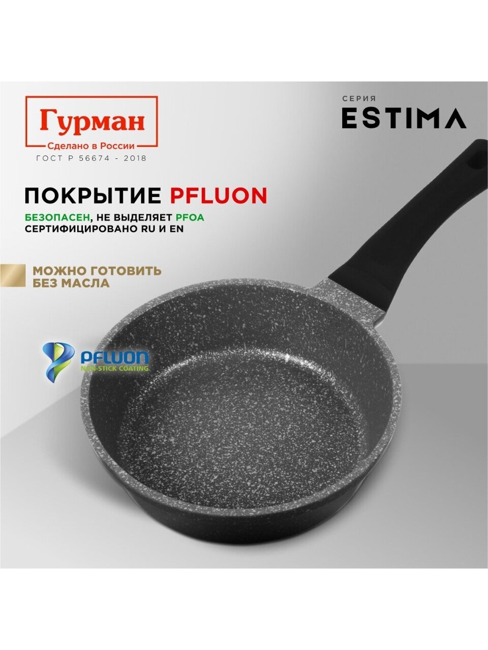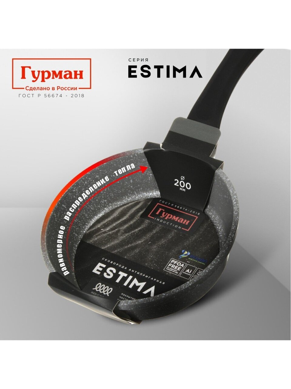 Сковорода 20 см из литого алюминия с гранитным антипригарным покрытием Estima: идеальный выбор для индукции, долговечность и лёгкая очистка.