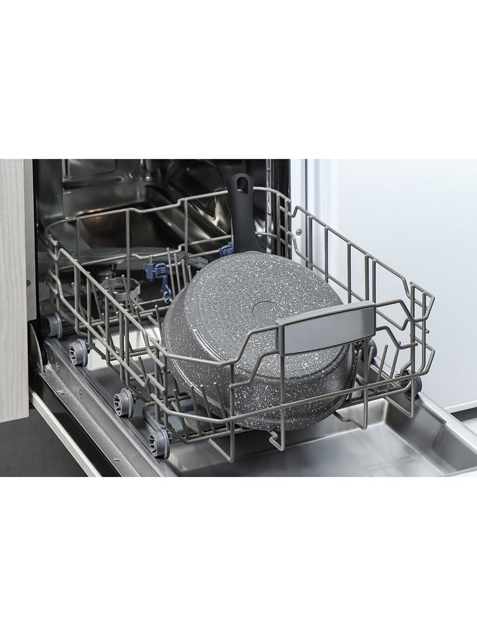 - Гранитное антипригарное покрытие — пища не пригорает, легко мыть даже в посудомоечной машине