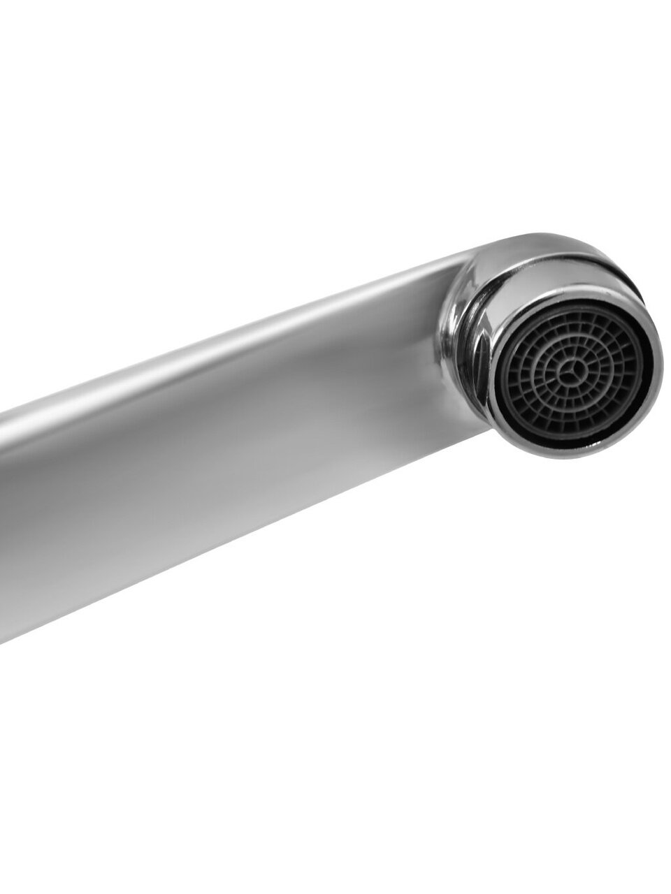 - Оптимальное решение для небольших кухонь — короткий монолитный излив 8,2 см экономит место у мойки