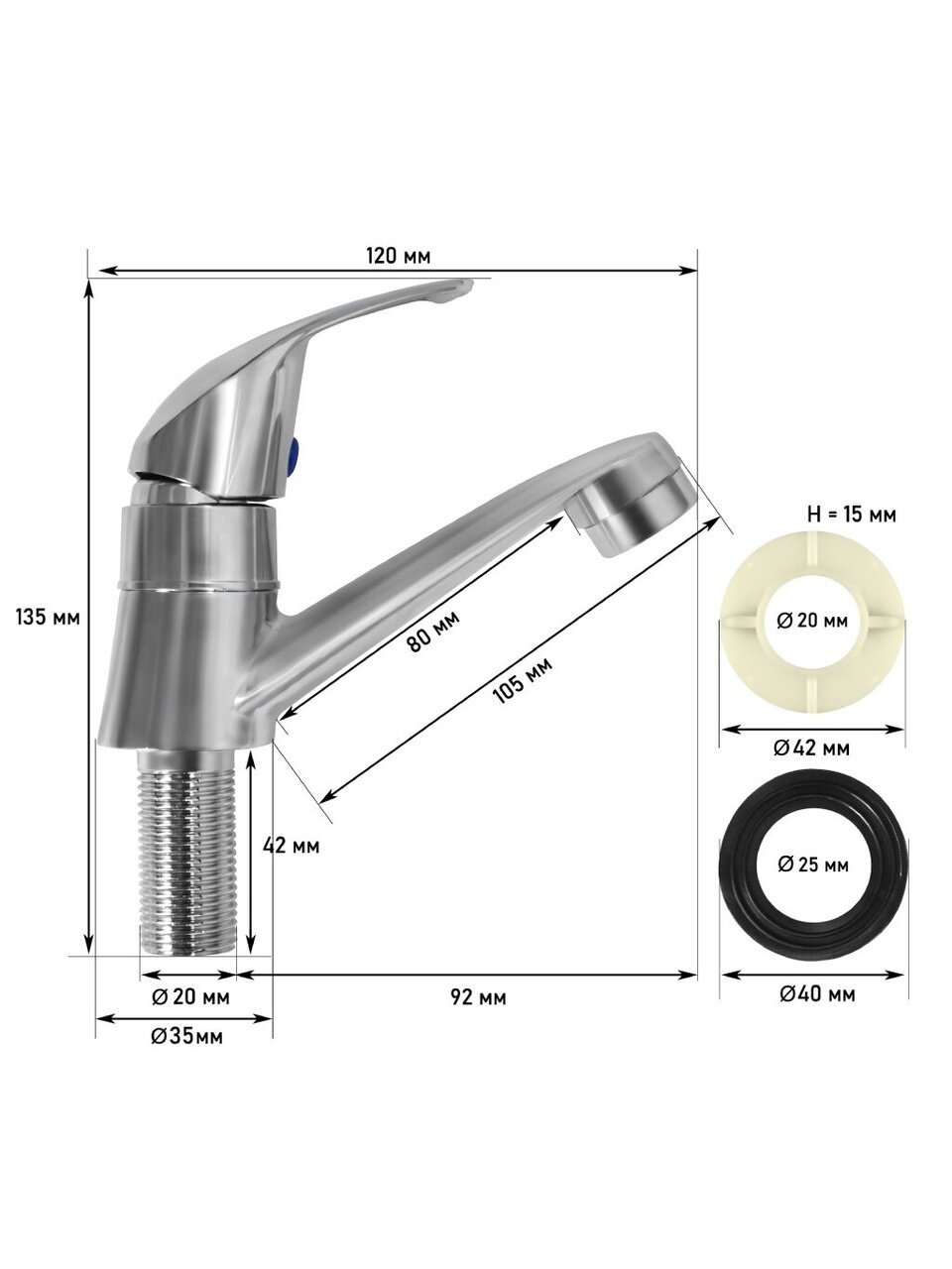 Многие спрашивают: «Чем отличается короткий излив от длинного и какой выбрать для кухни?» Короткий излив удобен для компактных моек, минимизирует разбрызгивание и идеально подходит для кухни в студии или на даче. В отличие от аналогов с пластиковым корпусом, здесь используется силумин — это повышает устойчивость к коррозии и гарантирует долгий срок службы. Управление вентильное, с керамическим картриджем, что обеспечивает плавность хода и отсутствие протечек. Модель рассчитана на подводку одной воды (холодной или горячей), что часто спрашивают для дачных условий или временного жилья.