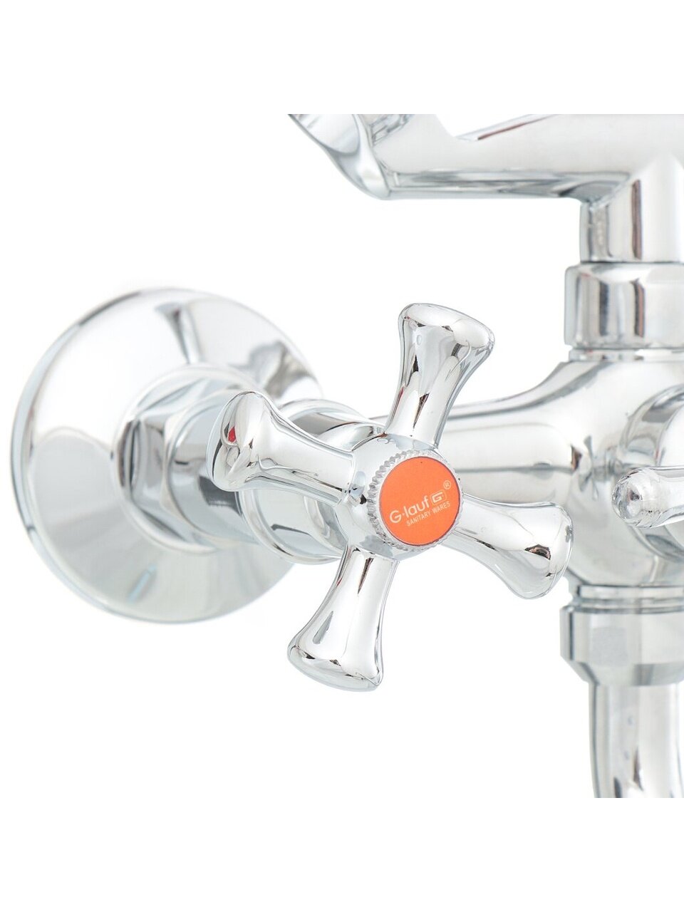 Смеситель для ванны G.lauf QFR7-A827 — это современное решение с двухвентильным управлением и длинным поворотным изливом, что особенно удобно для наполнения ванны и использования душа. Благодаря хромированной глянцевой поверхности смеситель не только стильно смотрится, но и легко очищается от водного налёта. Встроенная керамическая кран-букса делает переключение потоков воды плавным и исключает протечки, что важно для долгосрочного использования.